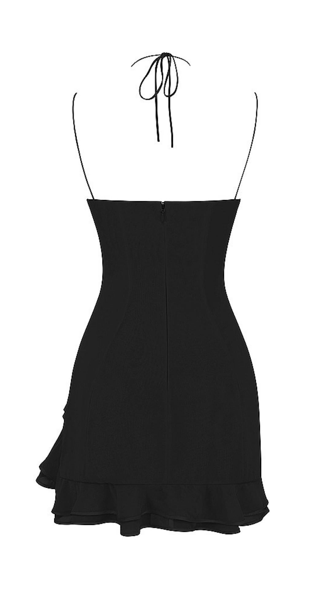 RUFFLE MINI DRESS IN BLACK