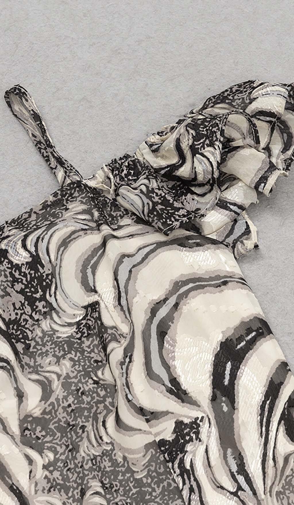 RUFFLE SIDE SPLIT MIDI DRESS IN PALE SAND