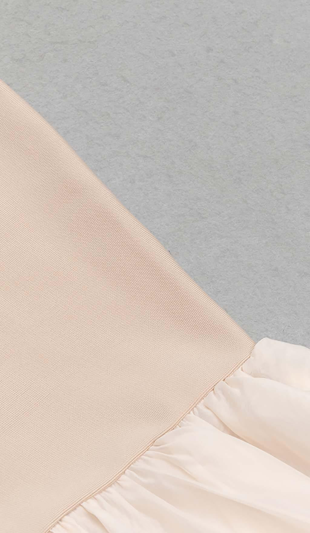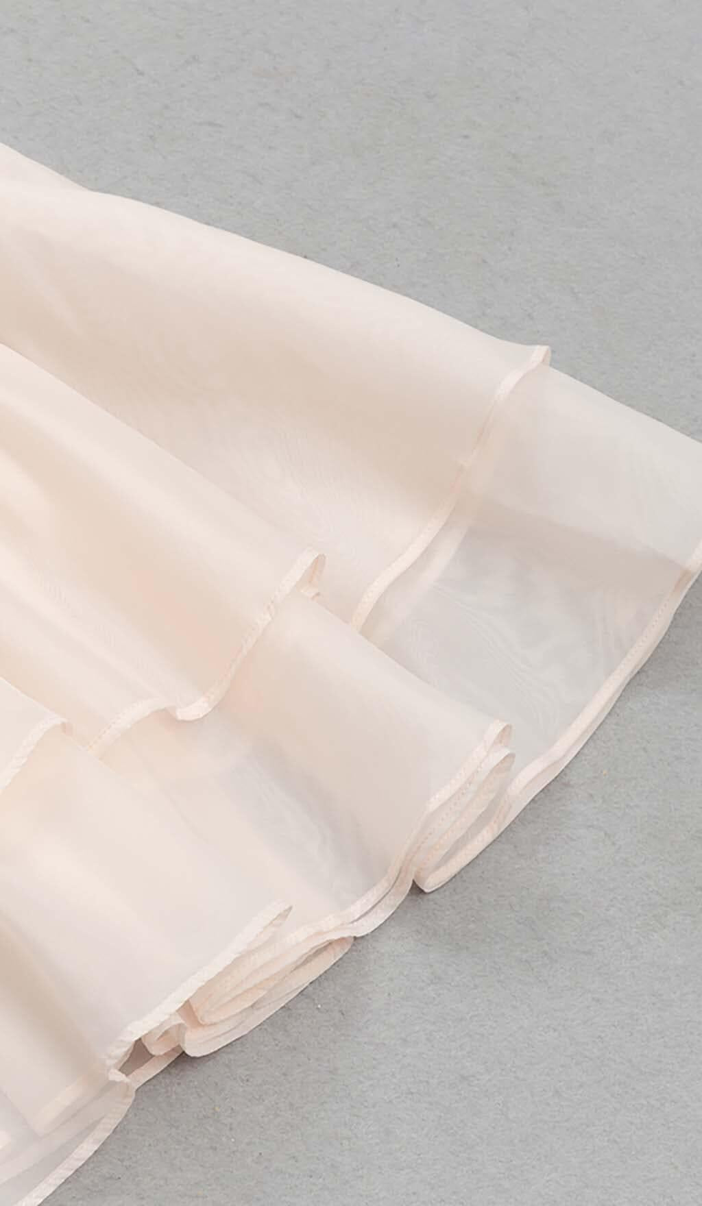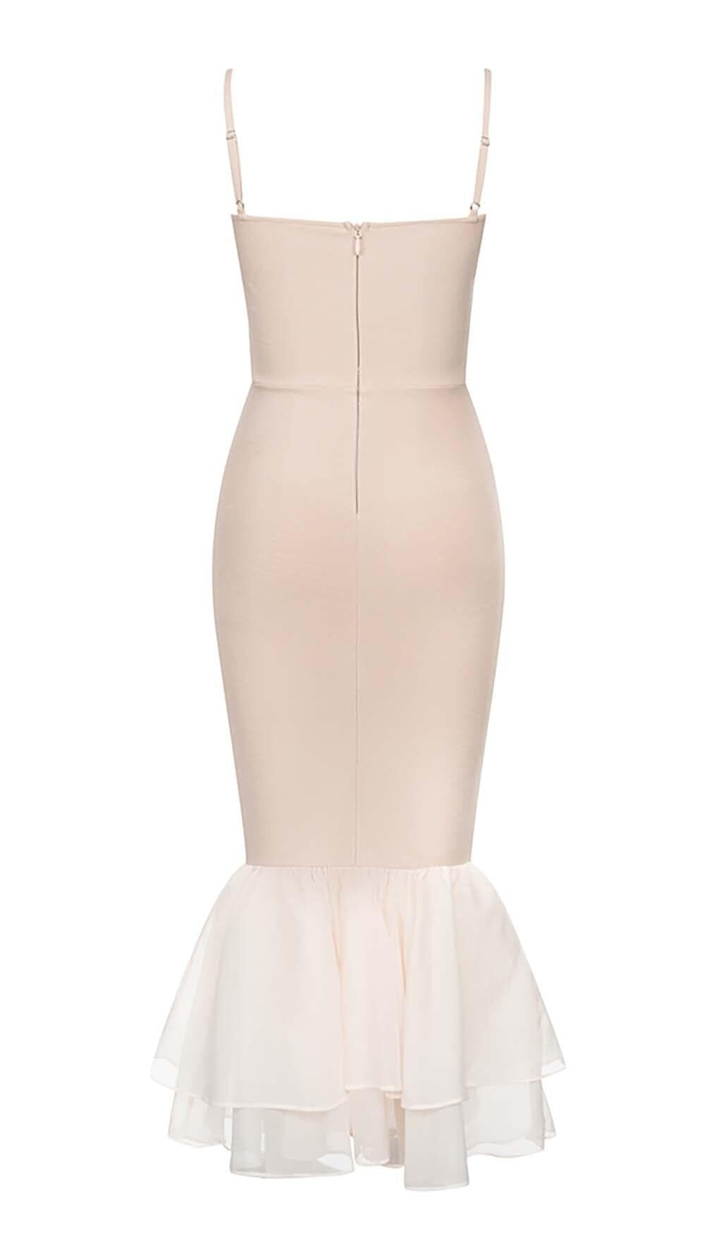 RUFFLE STRAPPY MIDI DRESS IN BEIGE