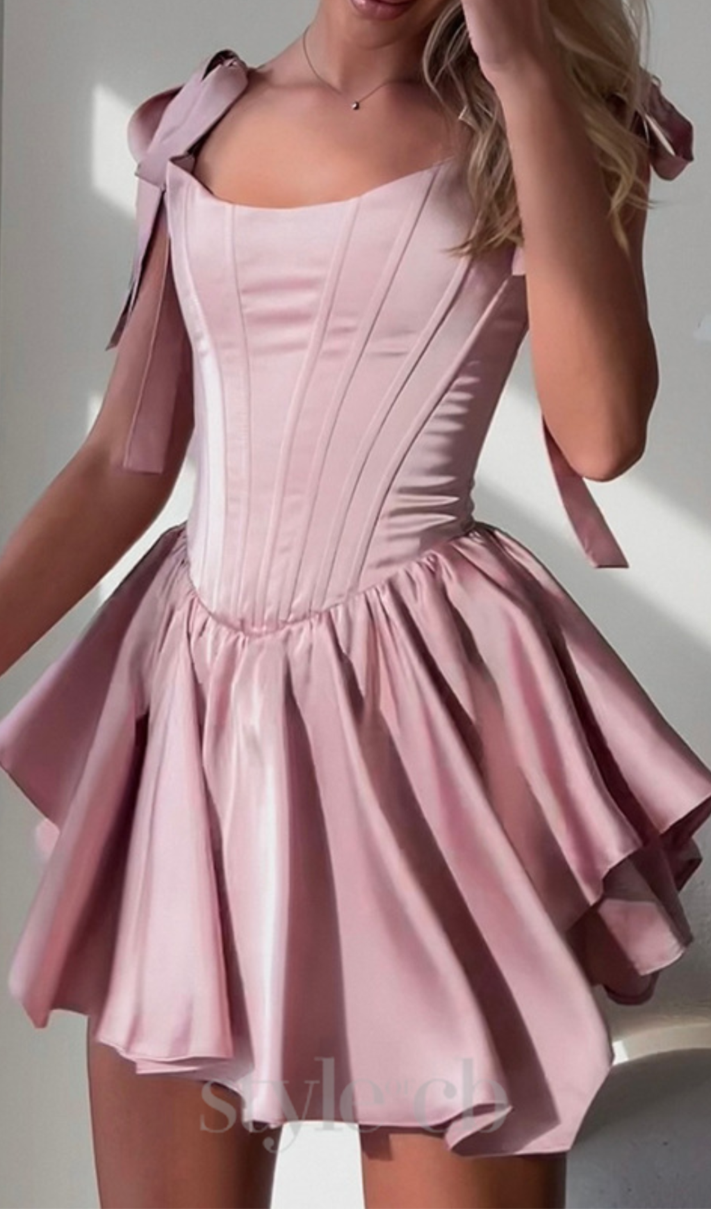 ruffle trim corset mini dress in pink