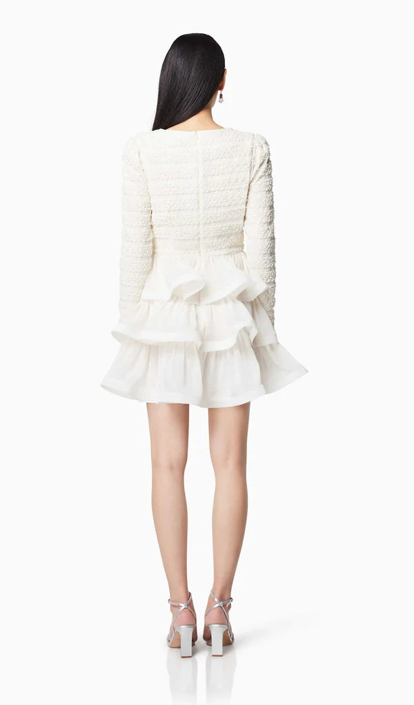 Ruffle trim Long Sleeved Mini Dress in white