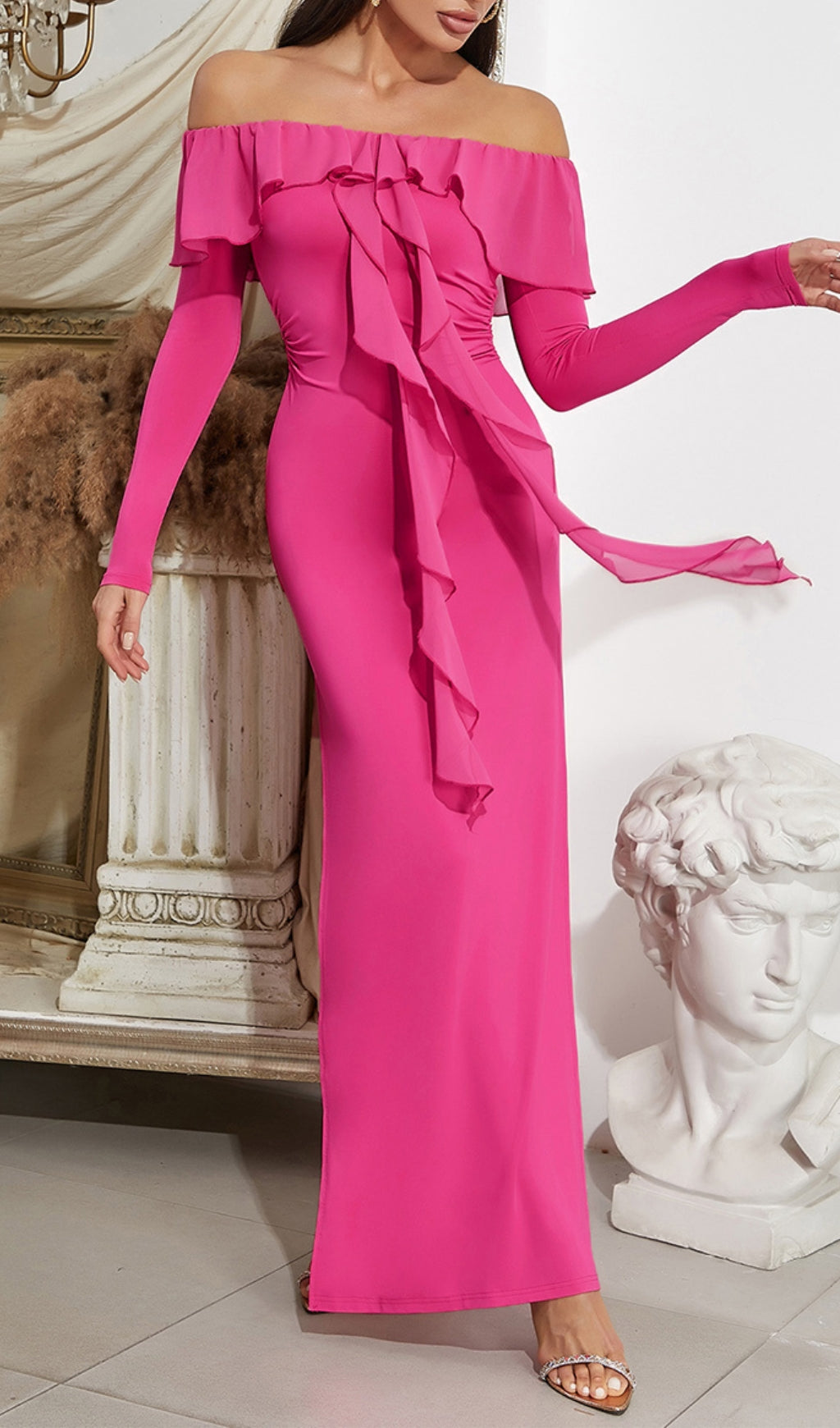 ARPAD RUFFLED SLIT MAXI DRESS