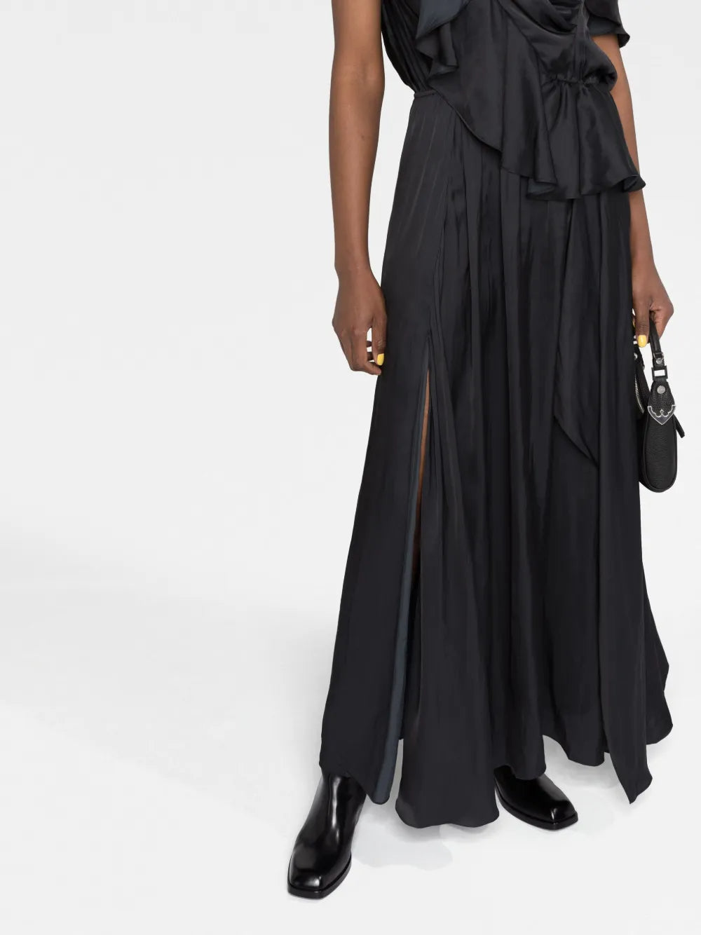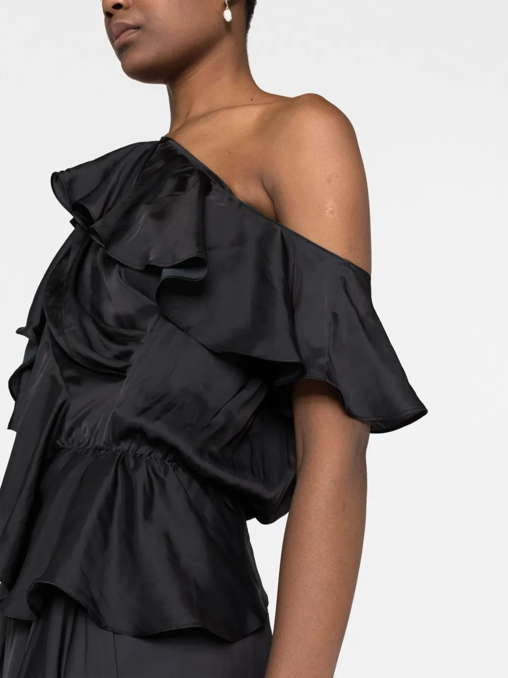 ruffled one-shoulder gown