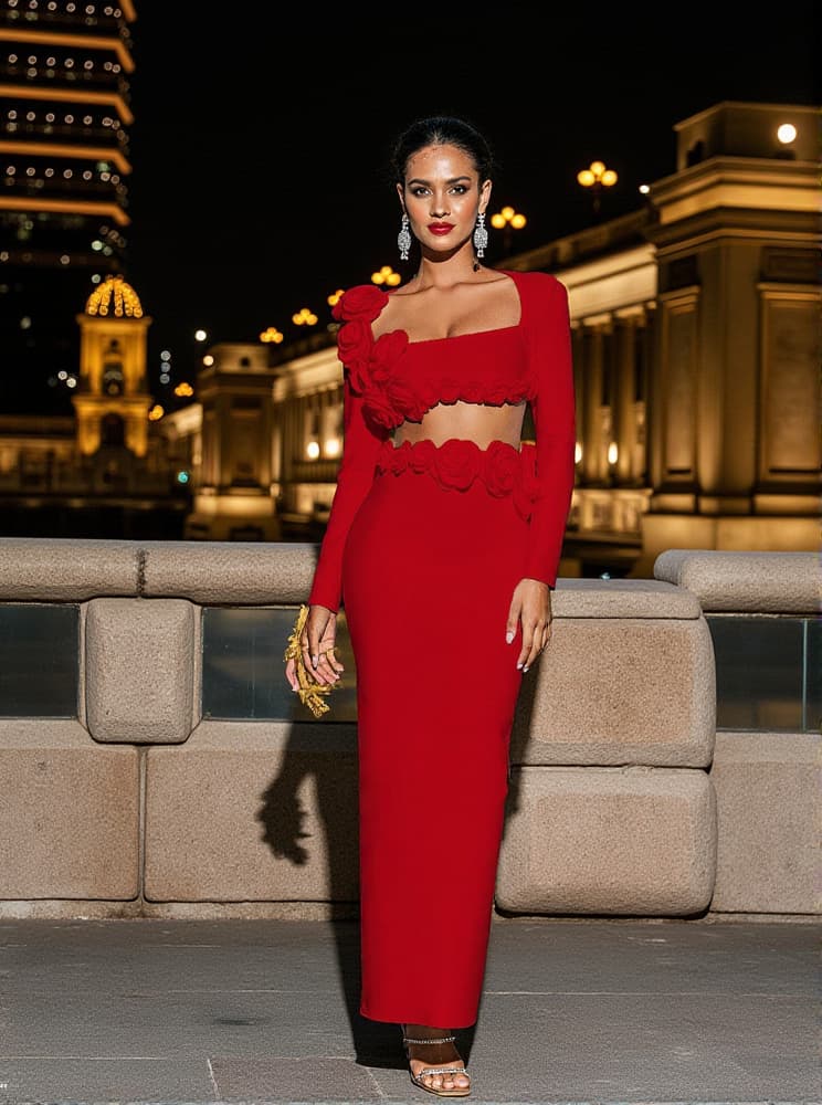 Rufus Flower Bandage Skirt Set In Red