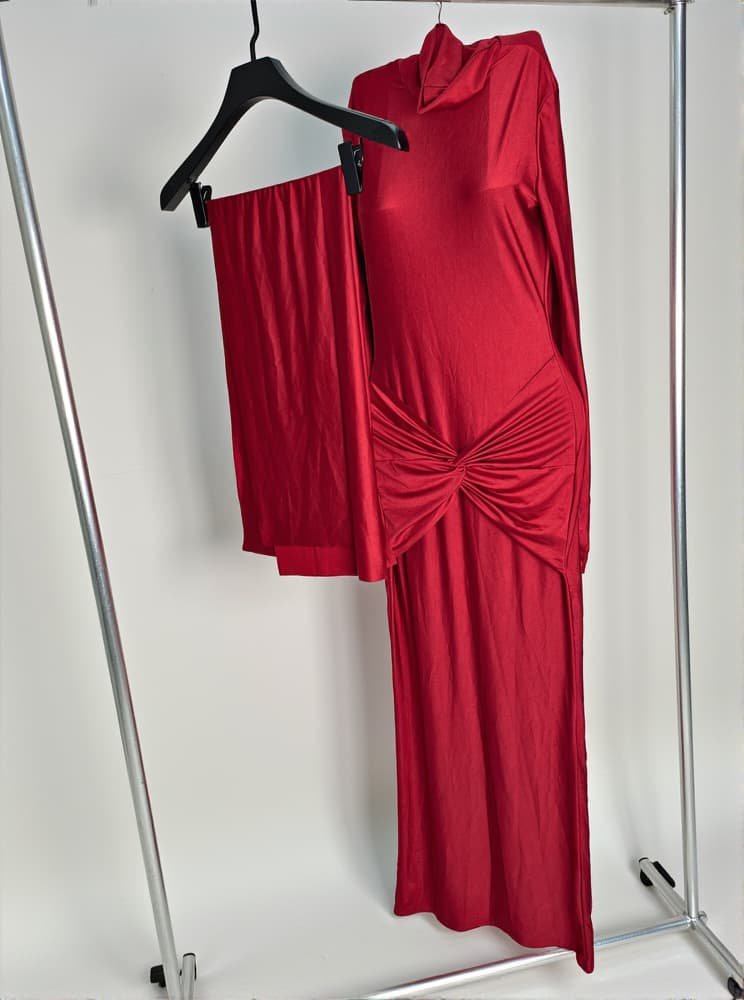 The Rumaysa Long Sleeve Twisted Maxi Dress is a stylish and elegant choice for any occasion. Made with high-quality materials, it boasts a flattering twisted design and a bold red color. Its long sleeves provide added coverage, while its maxi length offers a touch of sophistication. Perfect for making a statement while staying comfortable and chic.