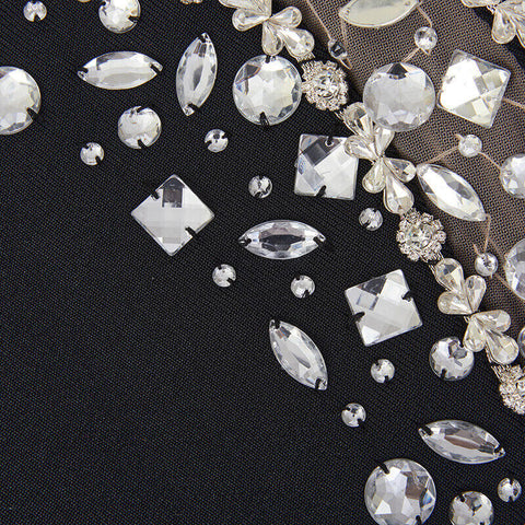Add our Sabine Strapless Embellished Bandage Dress to your collection! Chic and Elegant Style with heels and statement accessories for a look we're loving!
