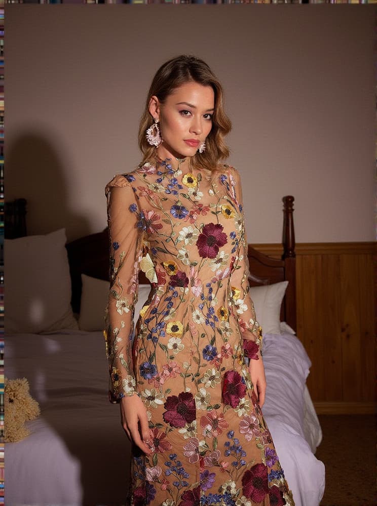 Effortlessly elegant. The Saige Long Sleeve Mesh Flower Mermaid Dress features delicate mesh and intricate flower detailing, while the mermaid silhouette flatters every figure. With its long sleeves and blush color, this dress will make you stand out at any formal event. Expertly crafted for maximum comfort and style.