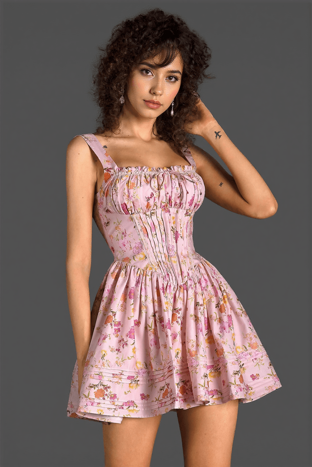 The Sallie strap woven floral print dress exudes a modern elegance and charm, perfect for any special occasion. Designed with delicate shoulder straps, this stunning piece features a captivating woven floral pattern that adds a touch of sophistication to your wardrobe. The addition of mini pleats brings a youthful playfulness while ensuring you radiate confidence and grace wherever you go.