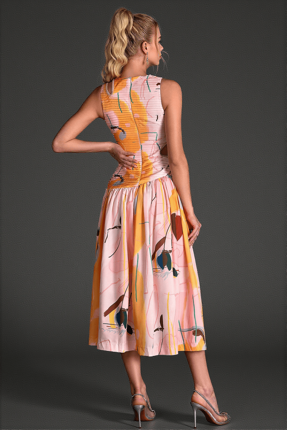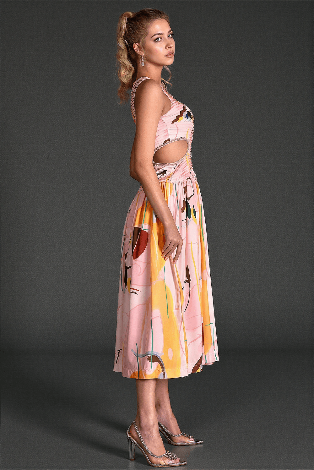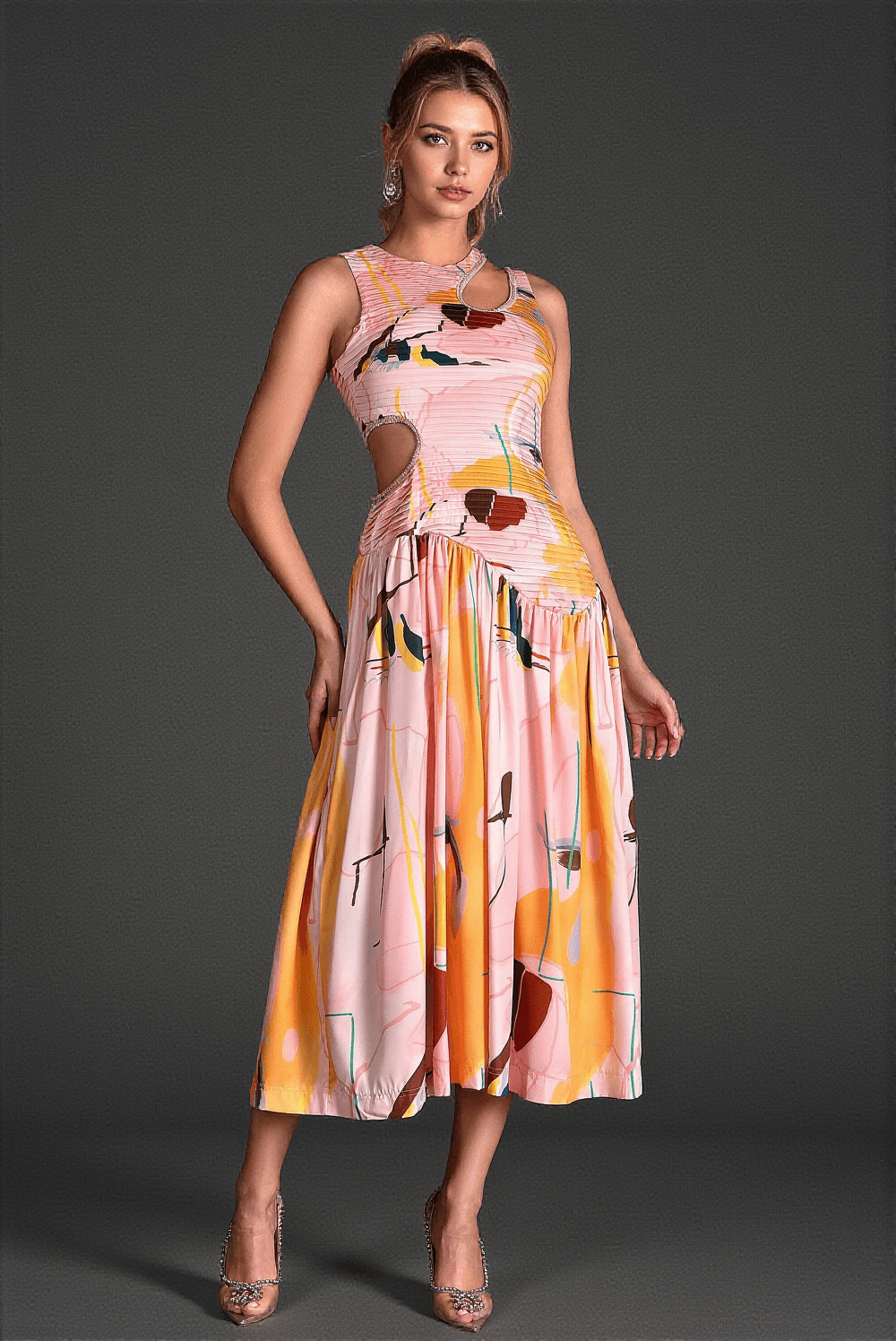 This sleeveless print cutout dress from Salloulis is a stunning addition to any fashion-forward wardrobe. Crafted with meticulous detail and eye-catching design, it promises to elevate your look in every warm-weather occasion.