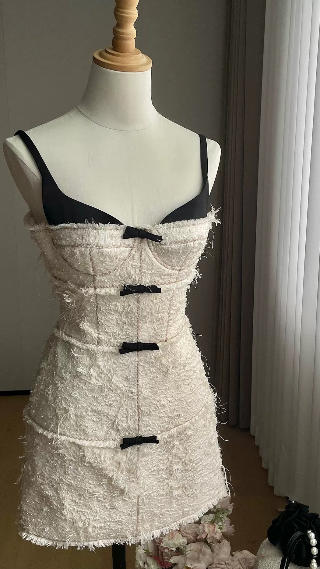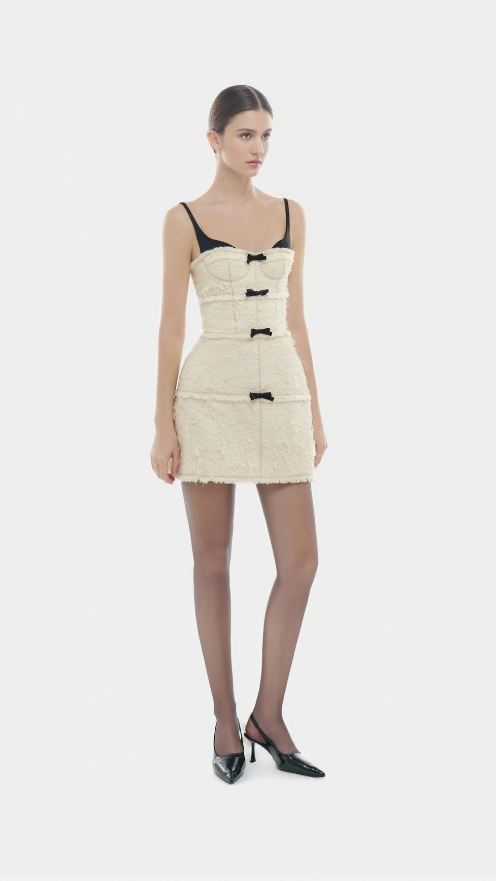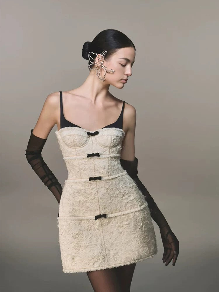 SANTOS BOW JACQUARD MINI DRESS - BEIGE