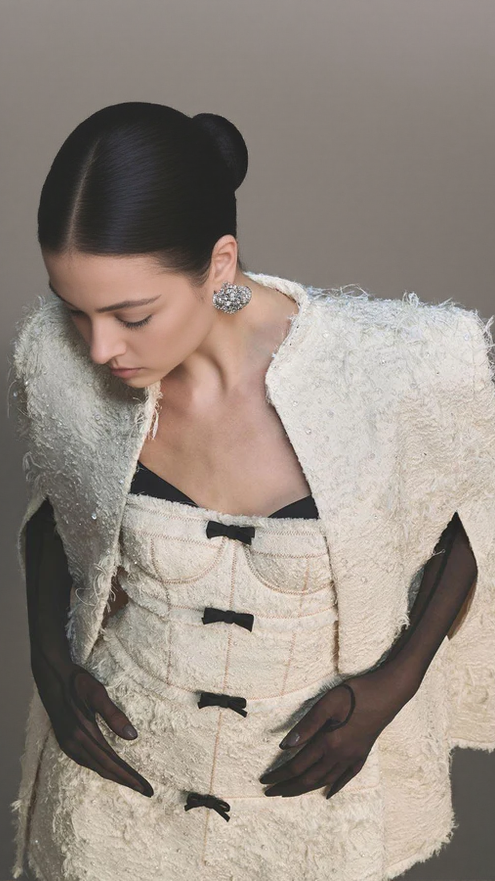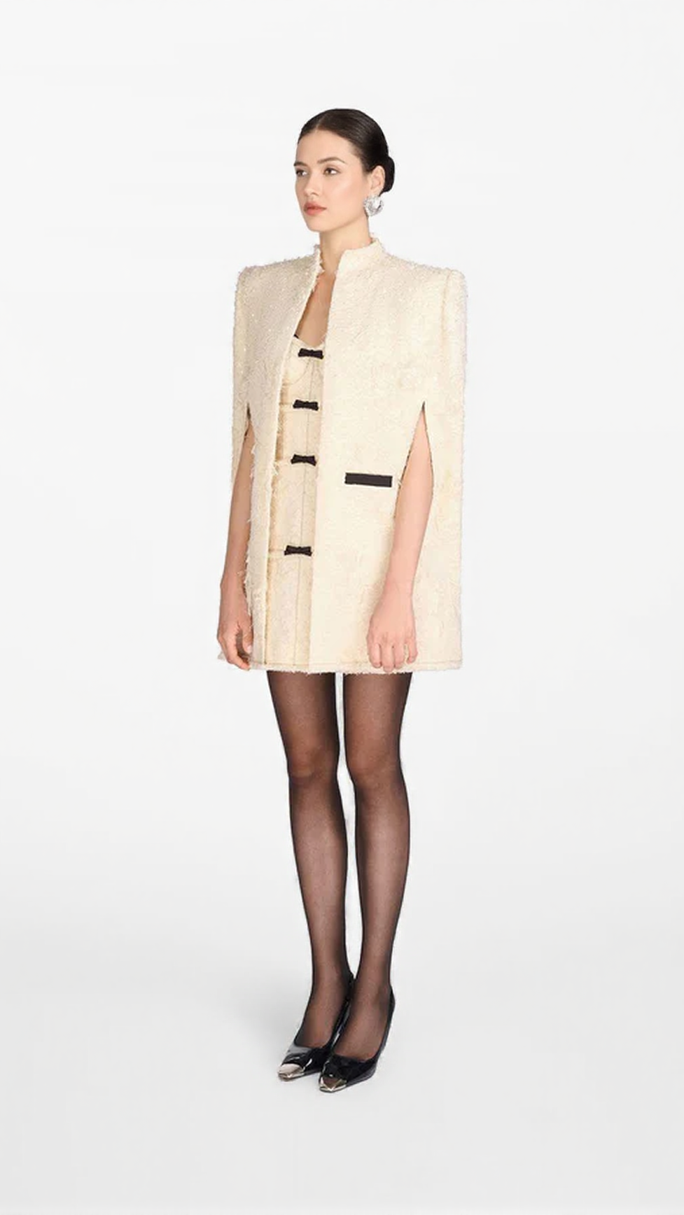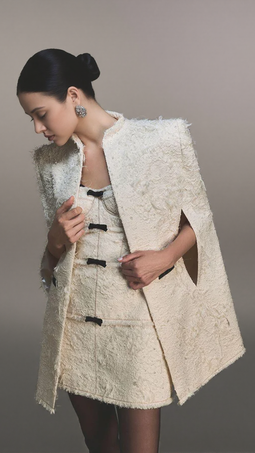 SANTOS BOW JACQUARD MINI DRESS - BEIGE