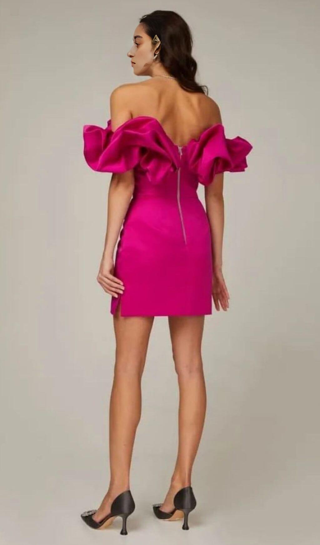 SATIN A-LINE NECKLINE POD RUFFLE MINI DRESS IN PINK