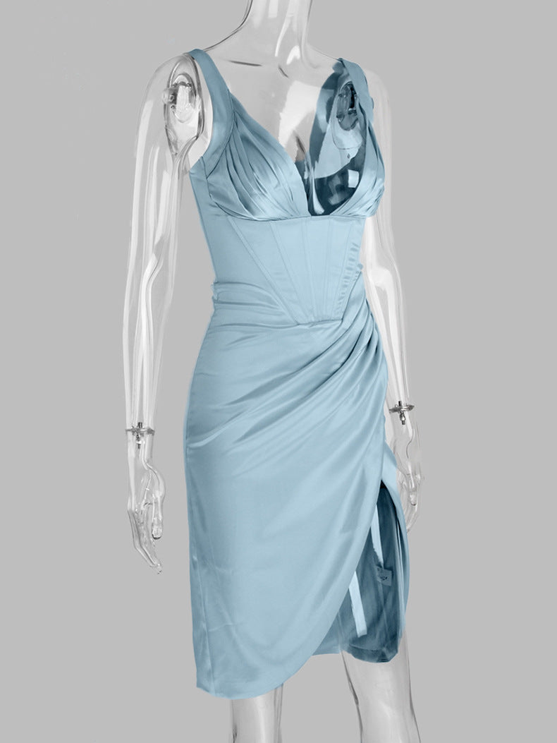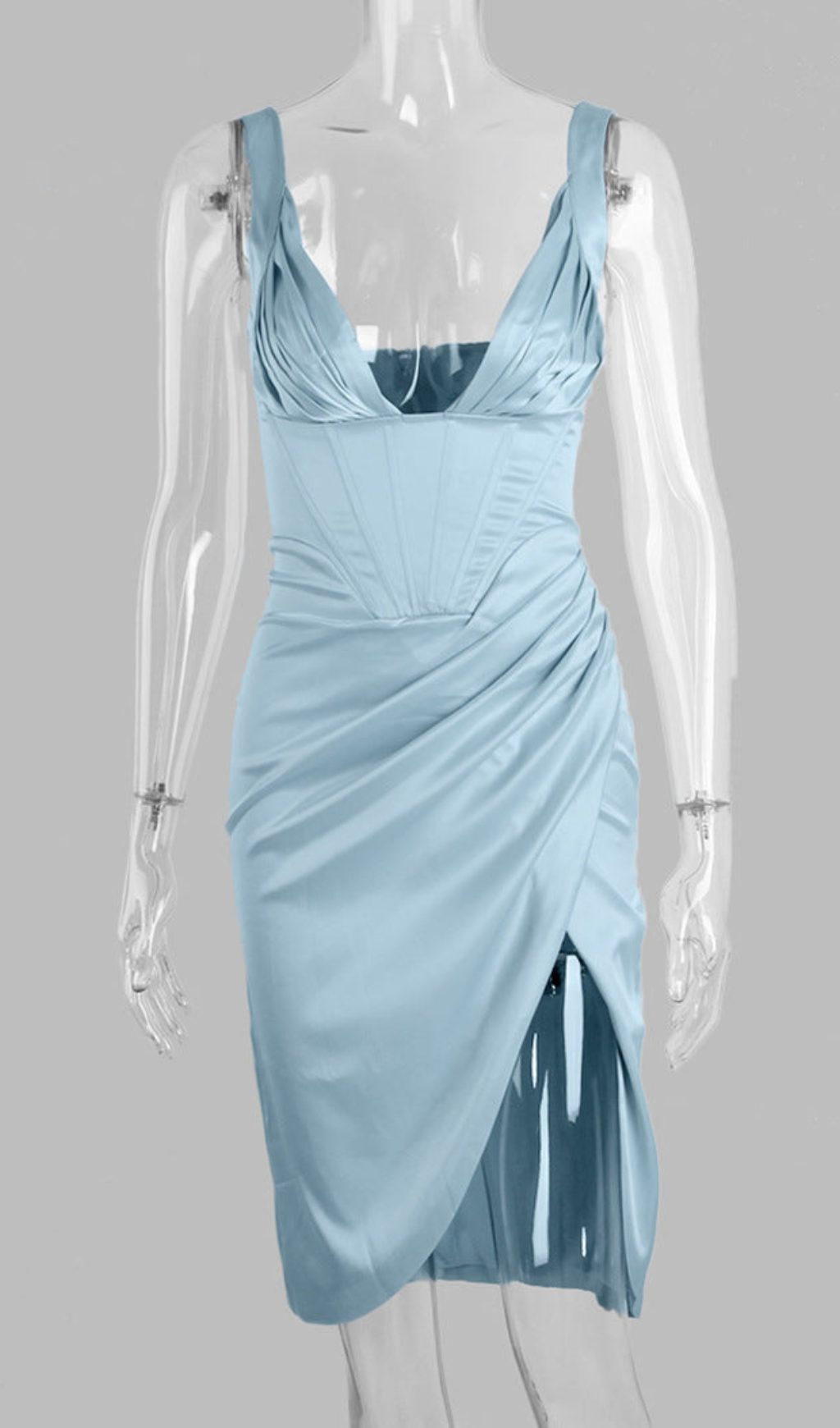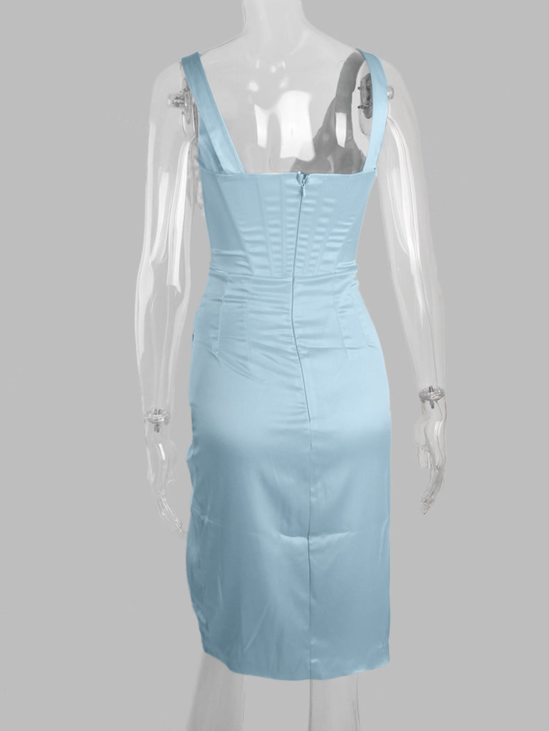 SATIN CORSET MIDI DRESS IN BLUE