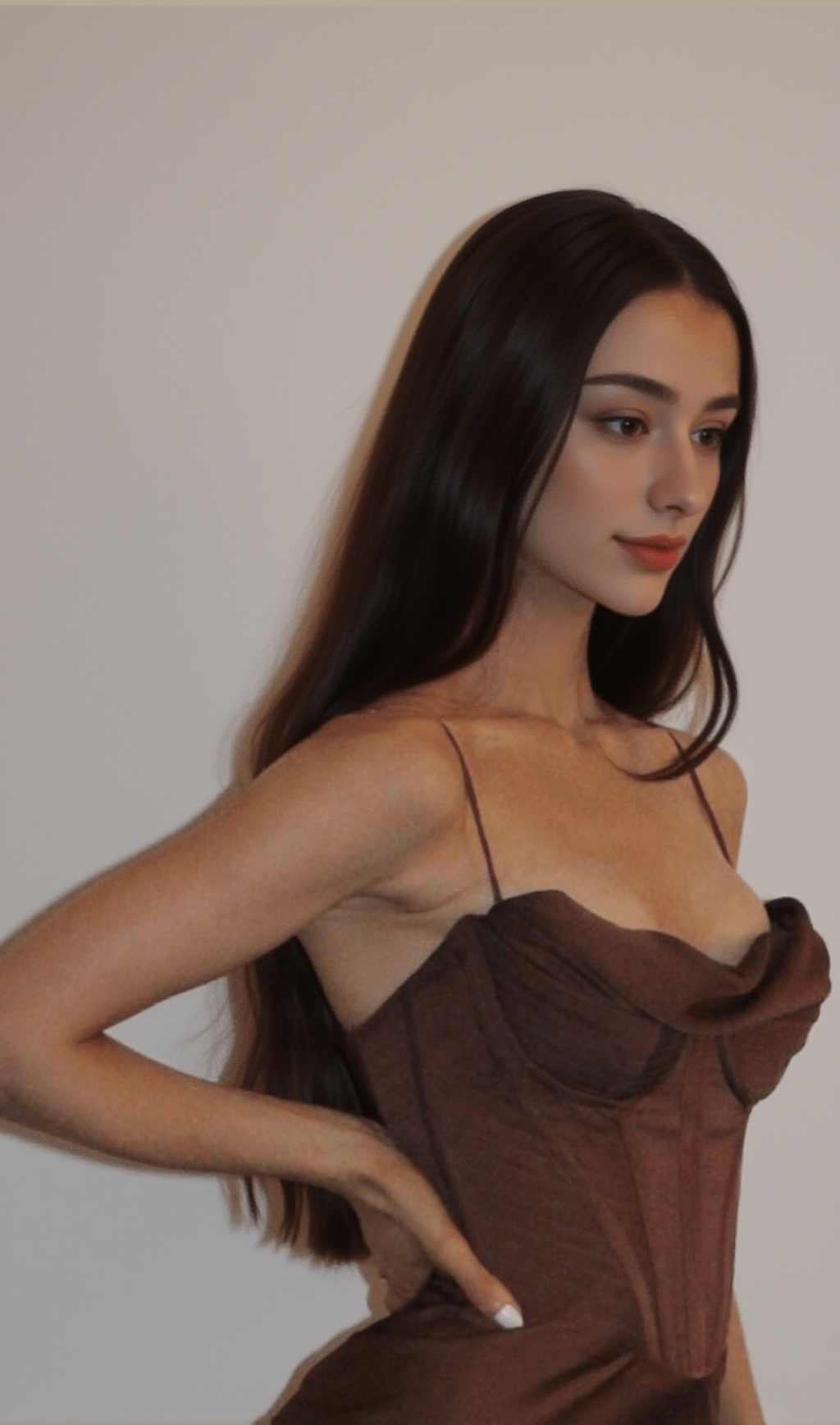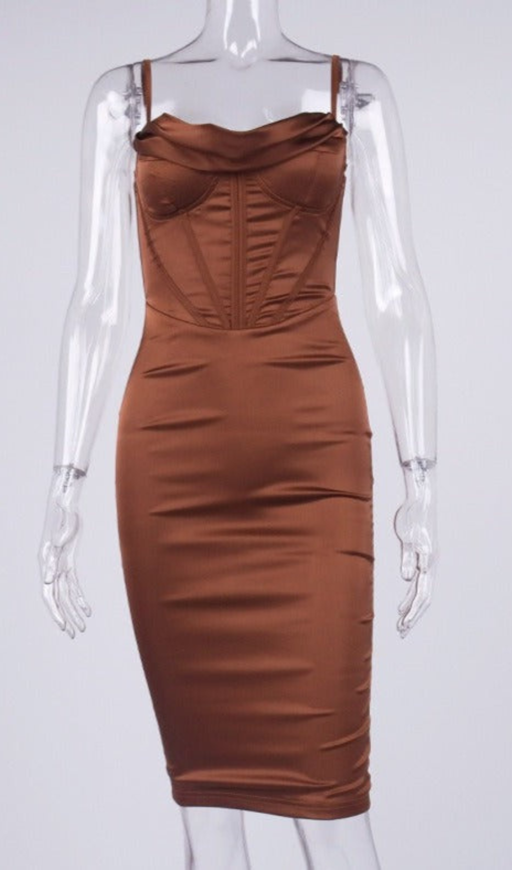 SATIN CORSET SLIP DRESS IN CHOCOLATE