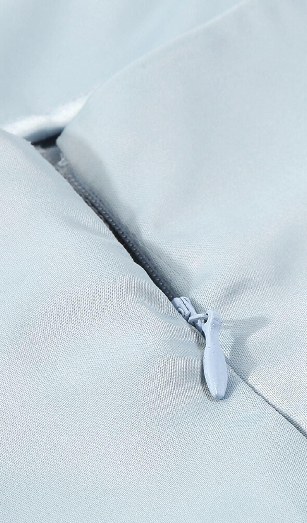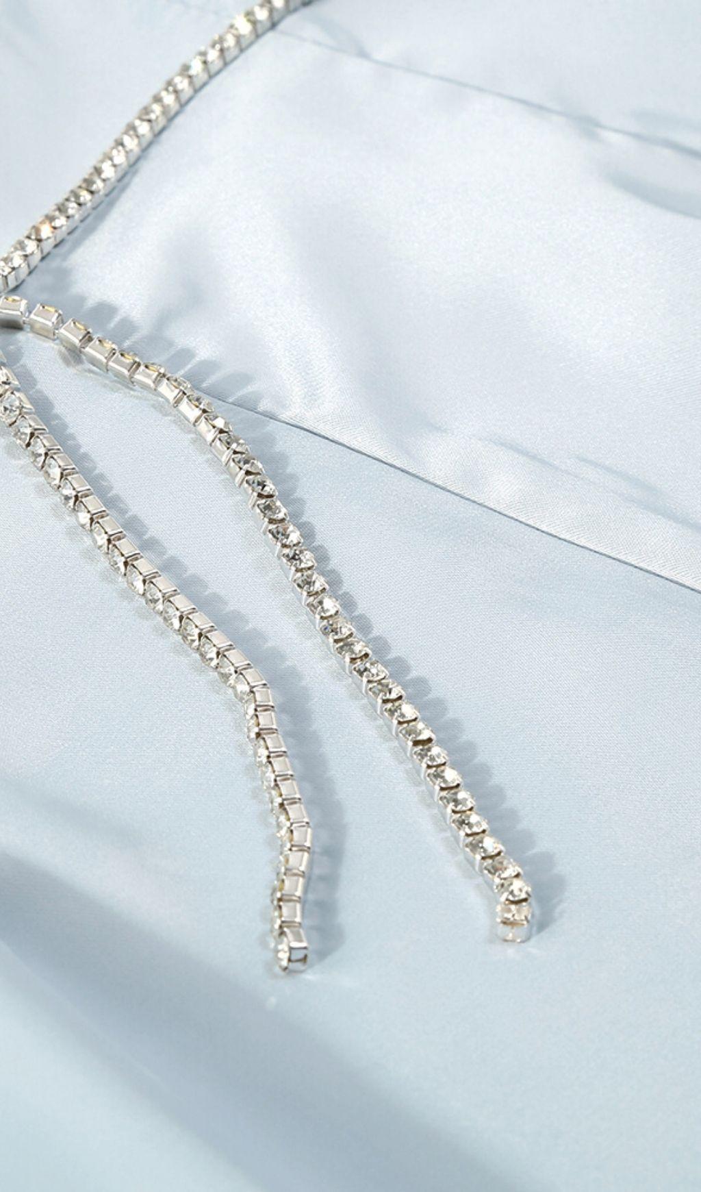 SATIN CRYSTAL CHAIN JUMPSUIT IN BLUE