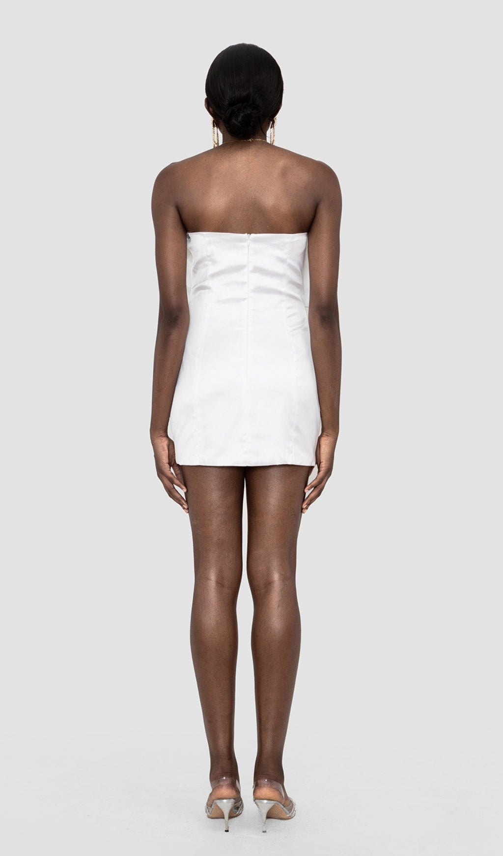 SATIN CRYSTAL EMBELLISHED BOW DRESS IN WHITE