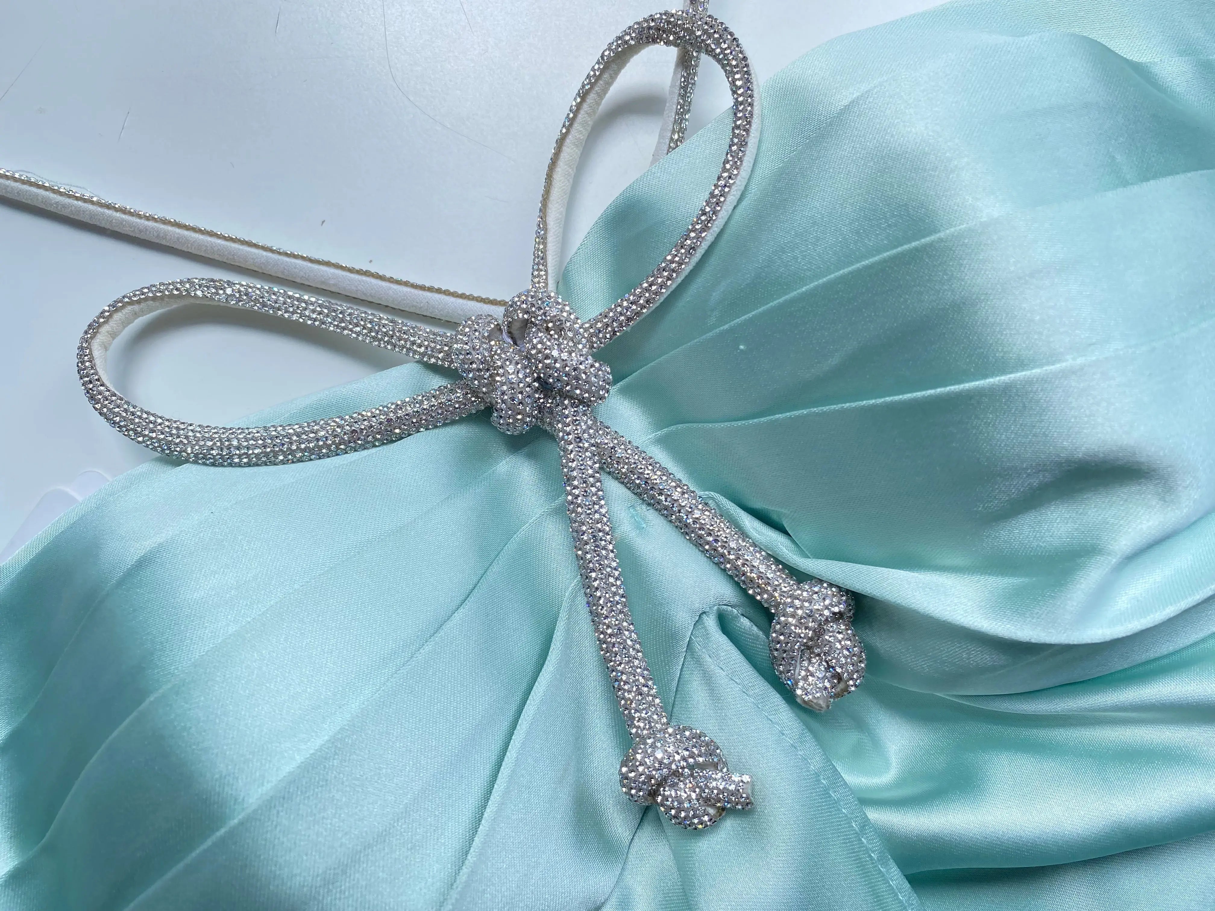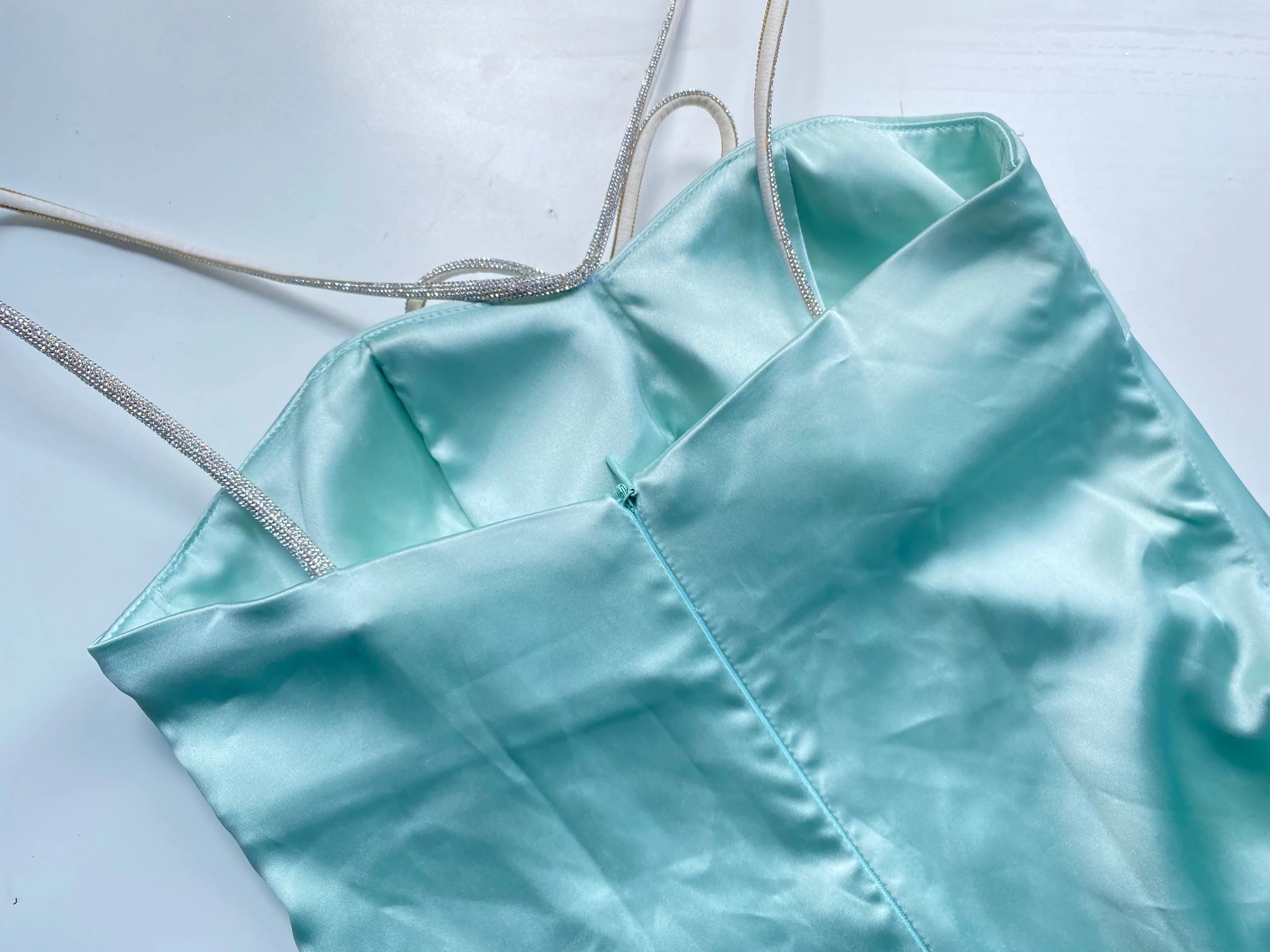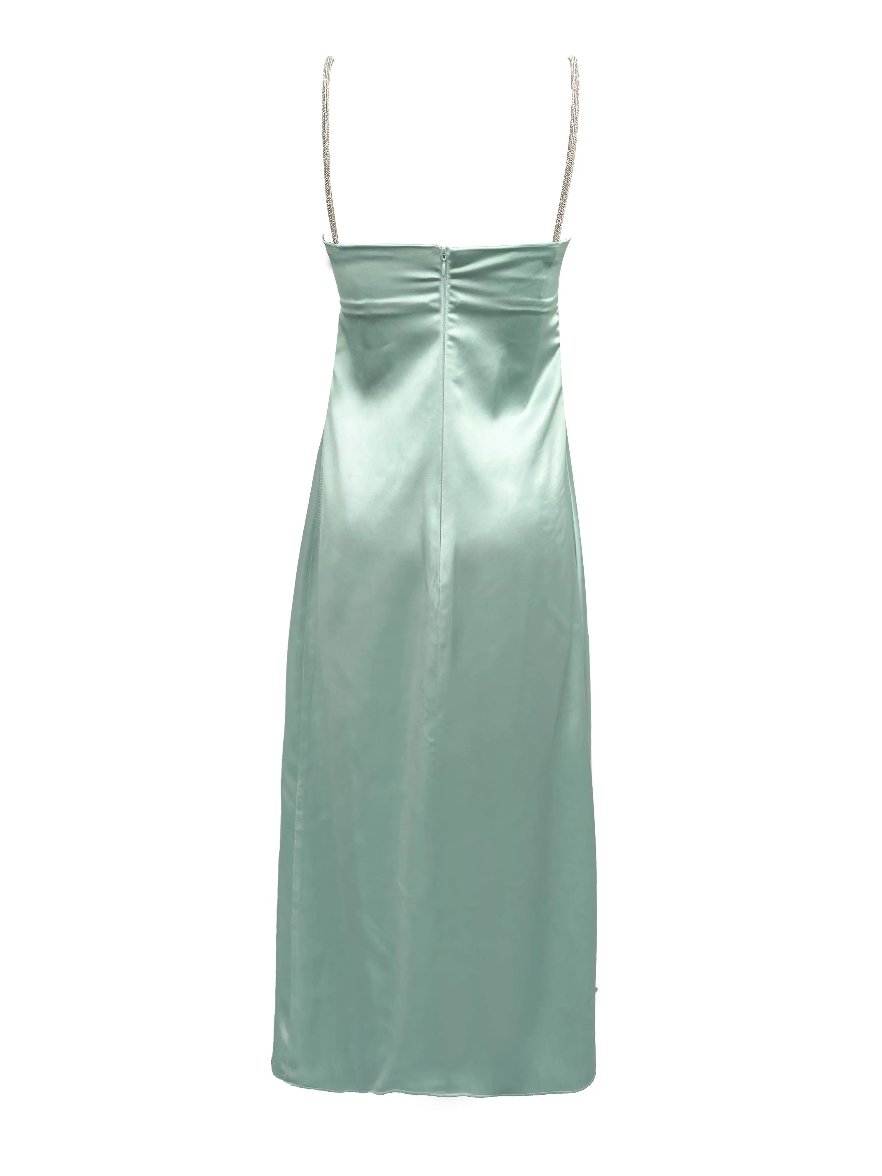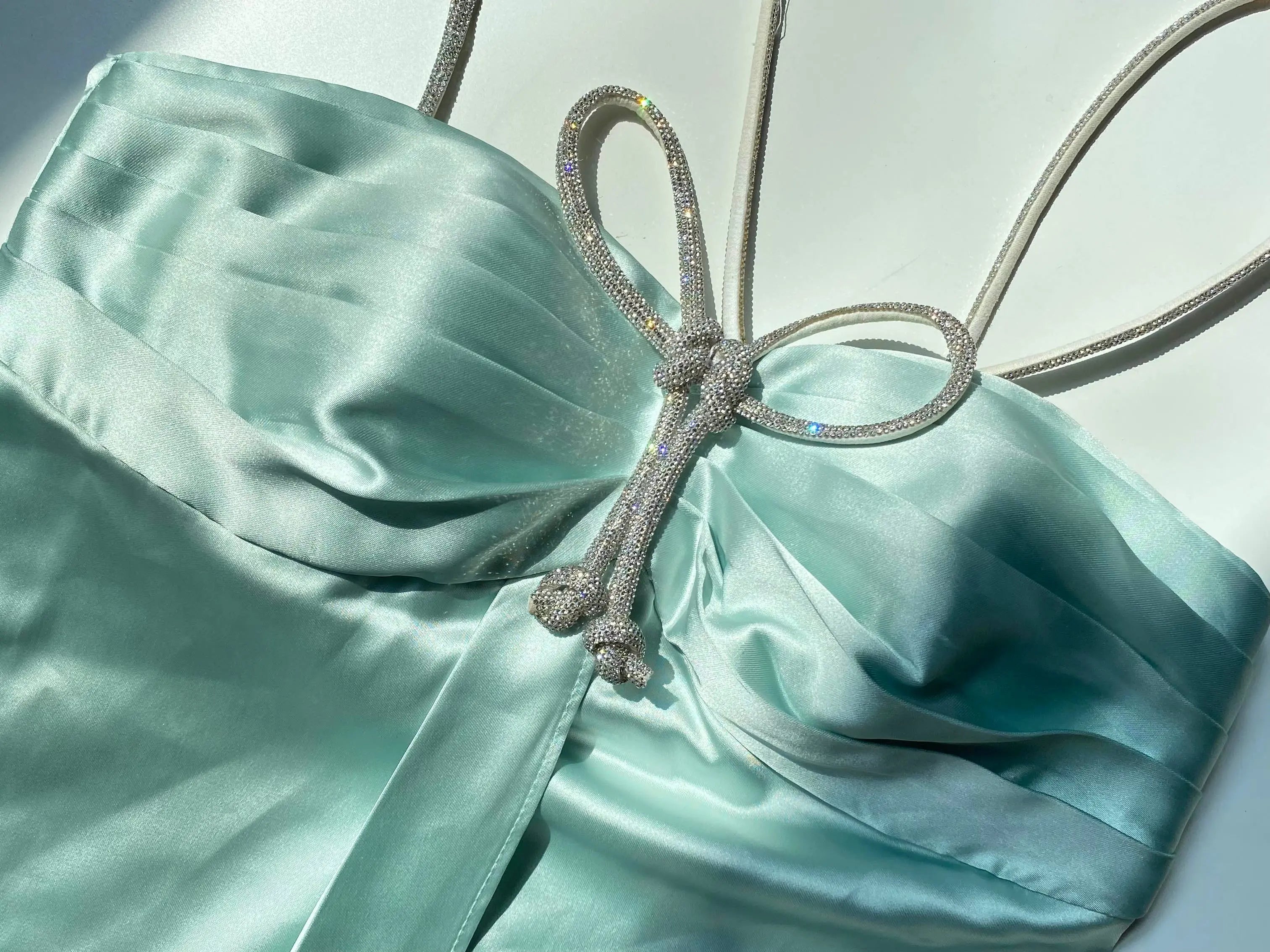 This stunning satin halter maxi dress in green is the perfect addition to your wardrobe. The dress features a flattering halter neckline and a sleek and sophisticated design that is sure to turn heads. The luxurious satin fabric feels soft and silky against your skin, making it comfortable to wear all day or night. The bold green color is perfect for any occasion, whether you're attending a formal event or a night out with friends. The dress is available in a range of sizes, so you can find the perfect fit for your body. Upgrade your wardrobe with this beautiful satin halter maxi dress.