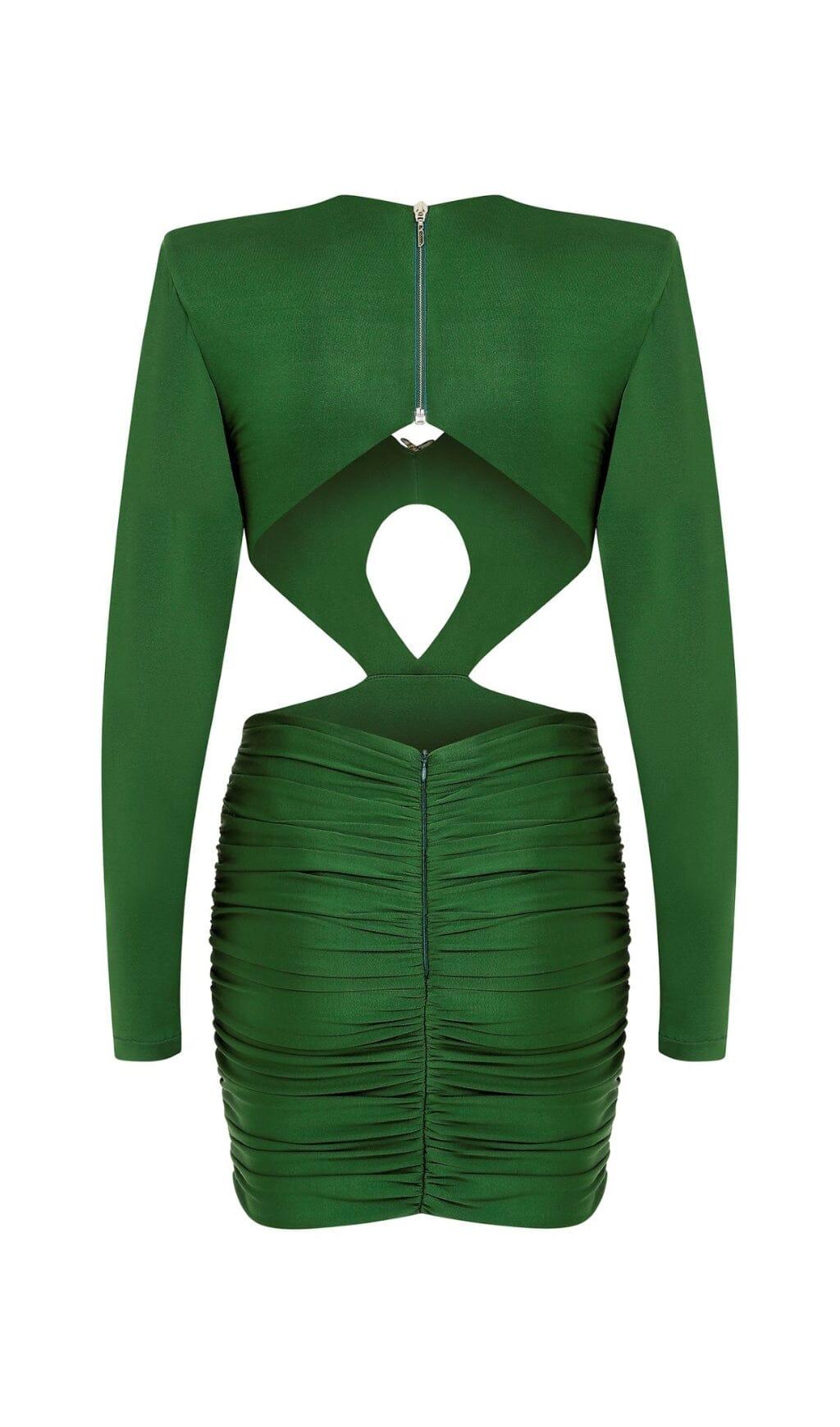 SATIN HEAVYWEIGHT CUT-OUT VINTAGE MINI DRESS IN DARK GREEN