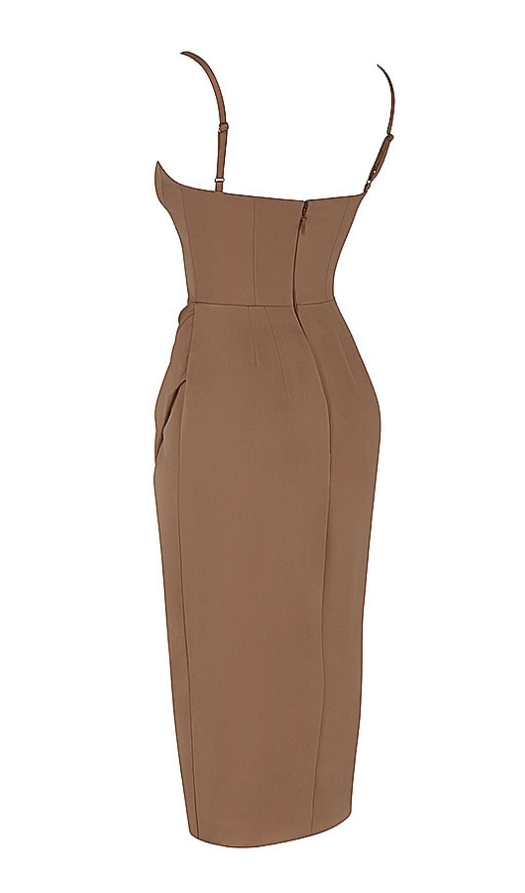 If you want to be a sexier, more attractive woman, this Satin Midi Dress in Brown is a must-have. Its waist-in design shows off your beautiful figure, while the brown color adds an intellectual and elegant touch. The asymmetrical design sets this dress apart and makes it a unique choice for any occasion.