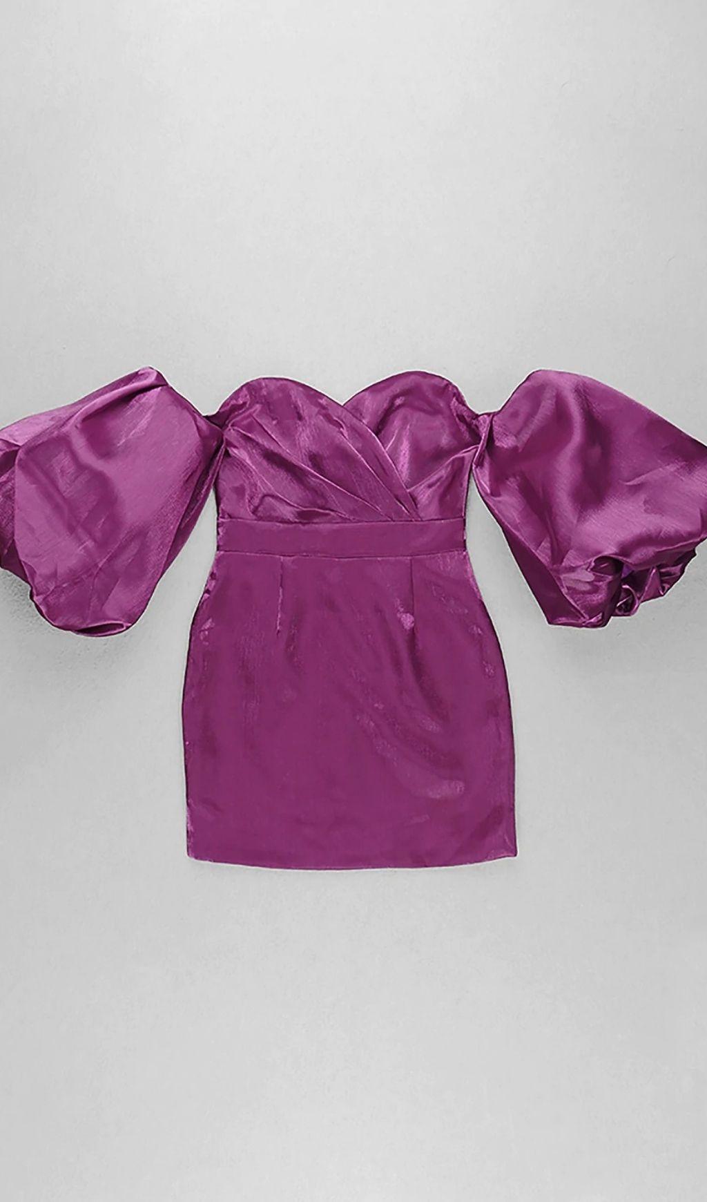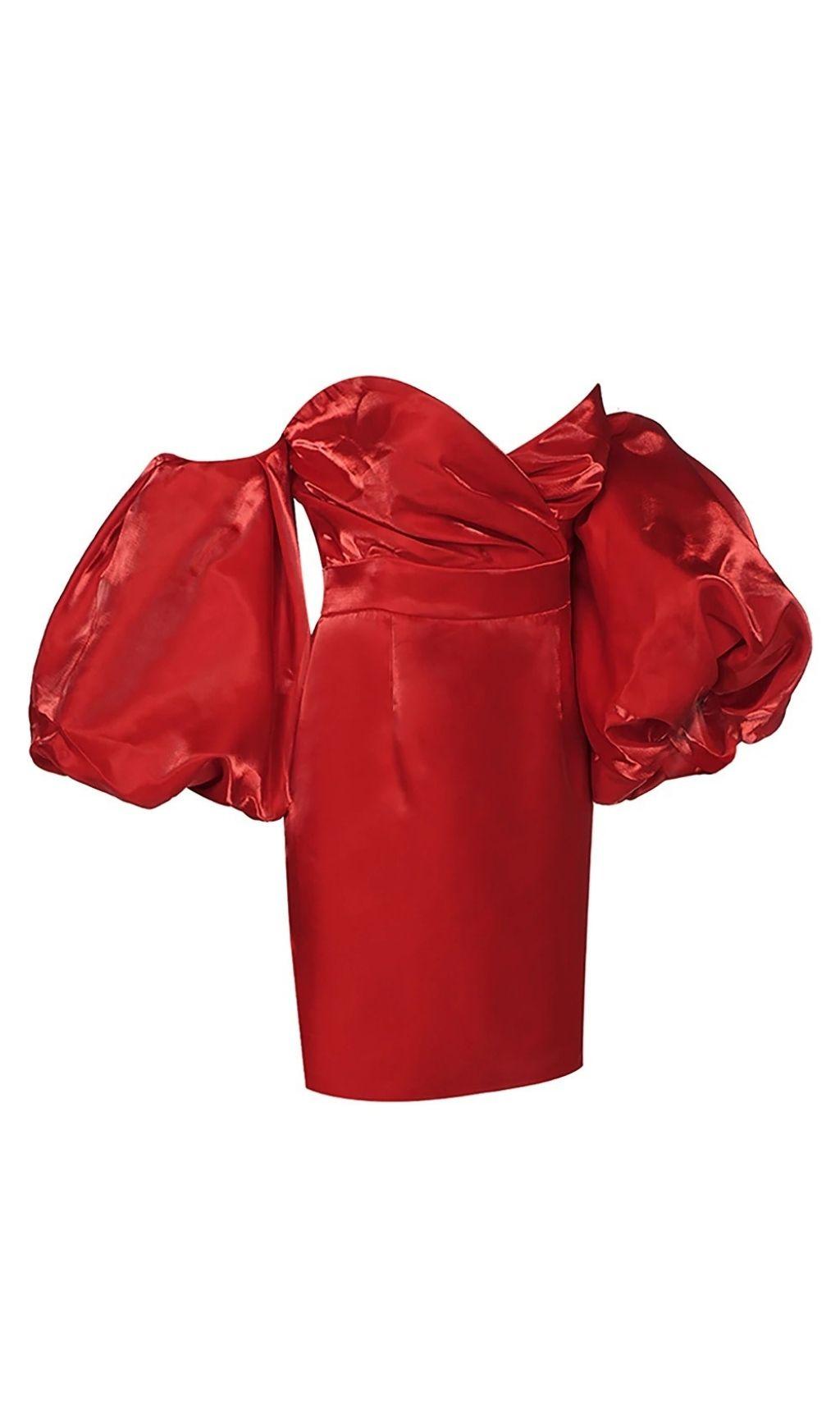 SATIN PUFF SLEEVE MINI DRESS IN RED