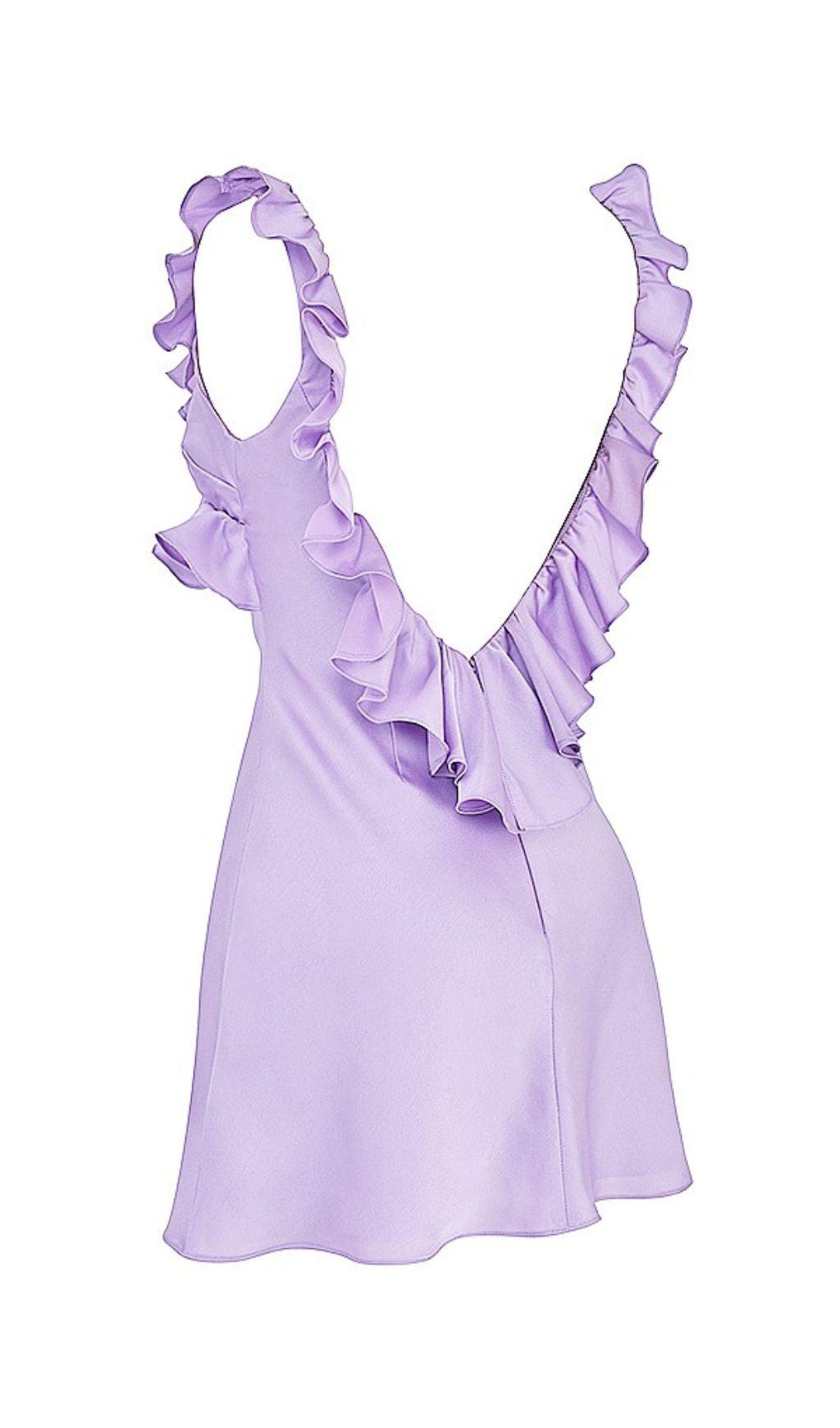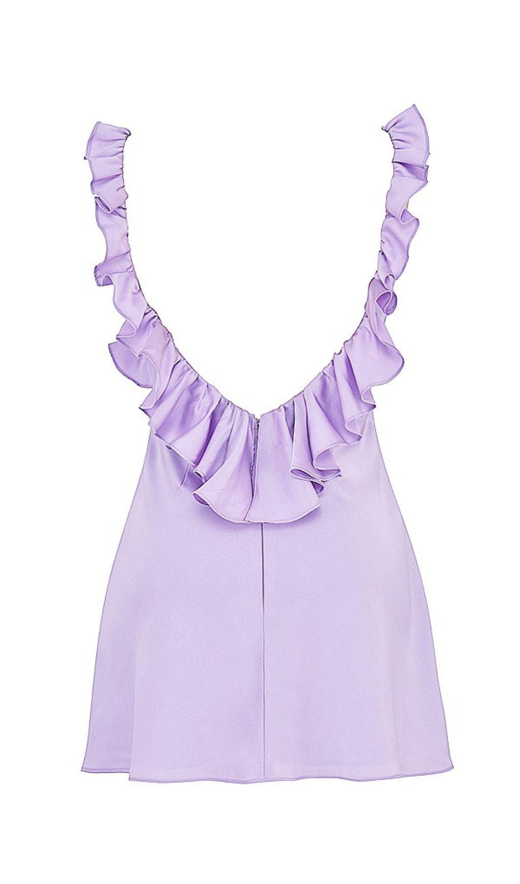SATIN RUFFLE MINI DRESS IN PURPLE