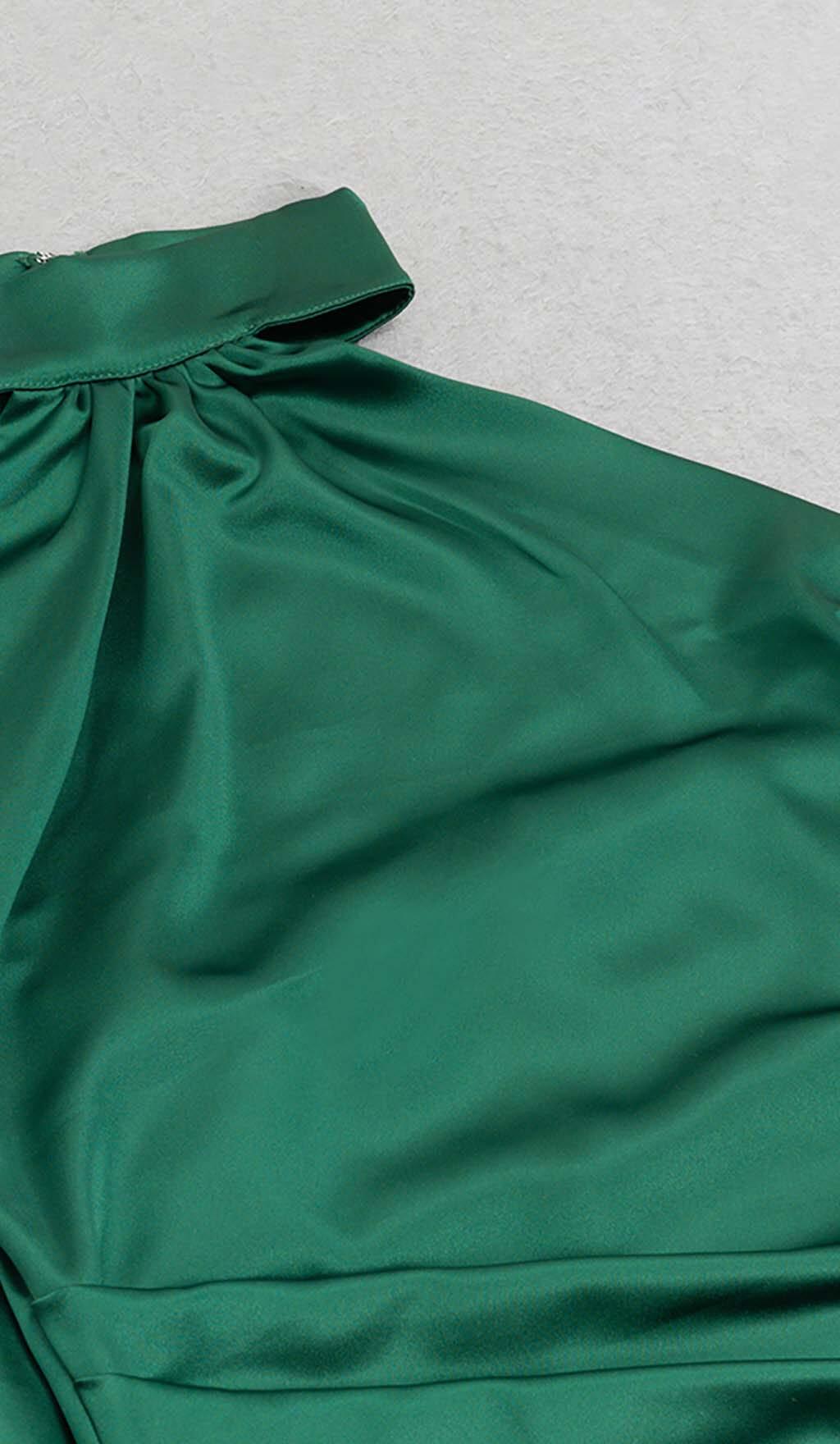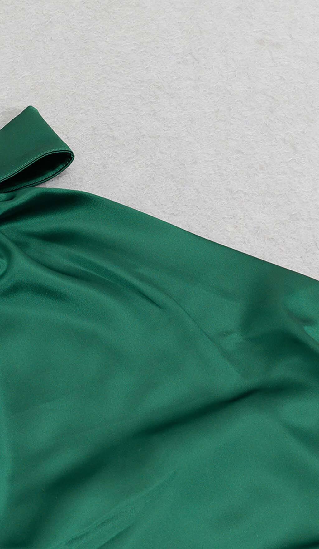 SATIN SIDE TIE MIDI DRESS IN GREEN