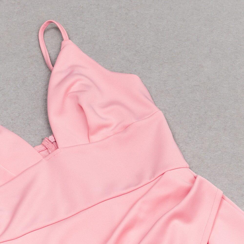 Satin Strapy Split Midi Dress in Pink