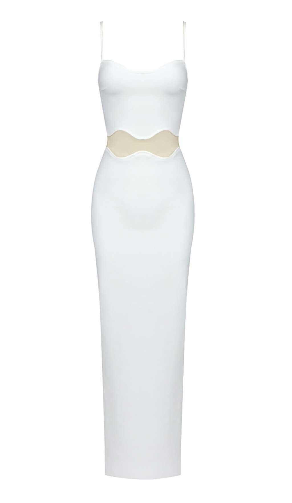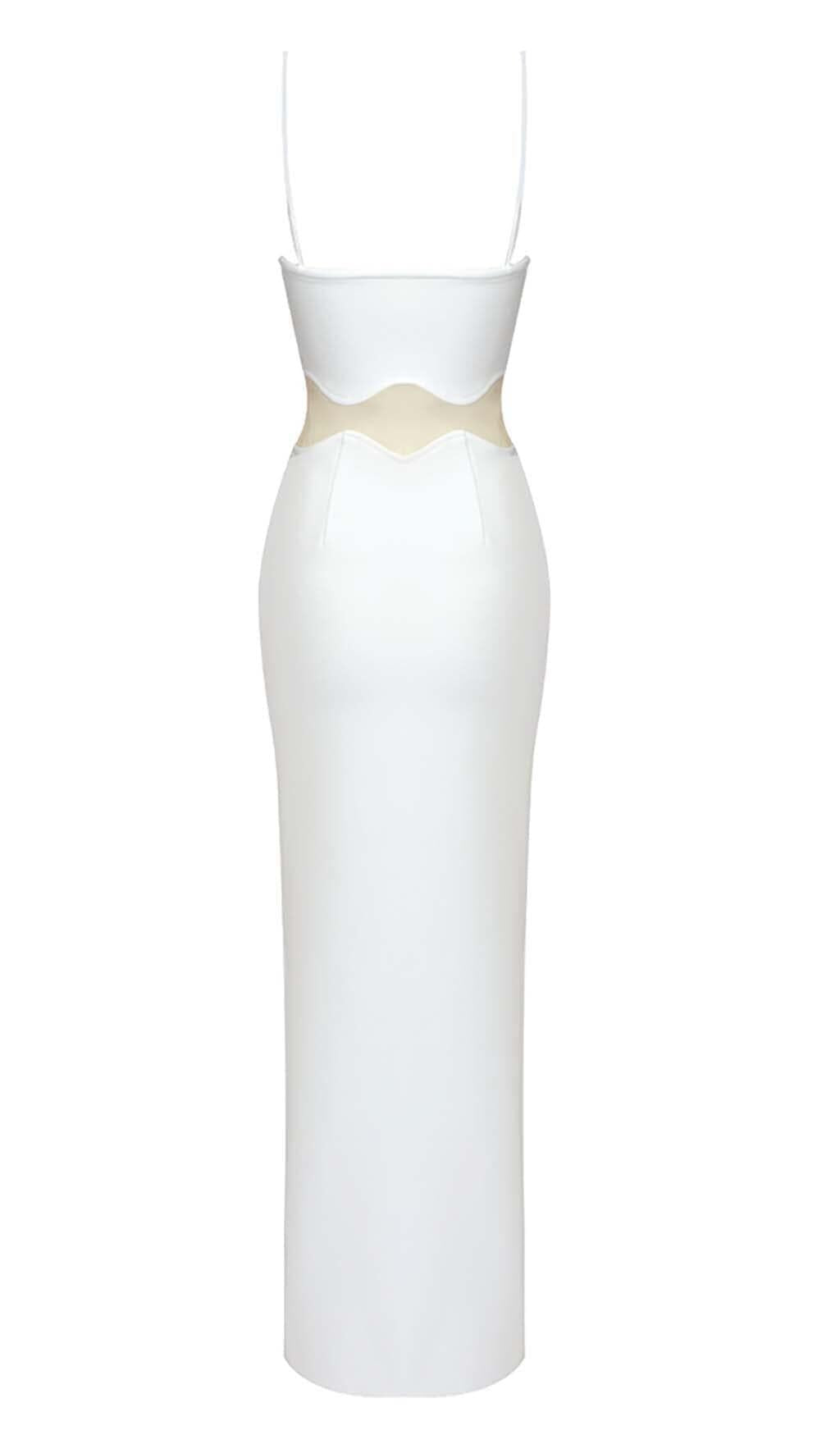 SCALLOPED MESH INSERT MAXI DRESS IN WHITE