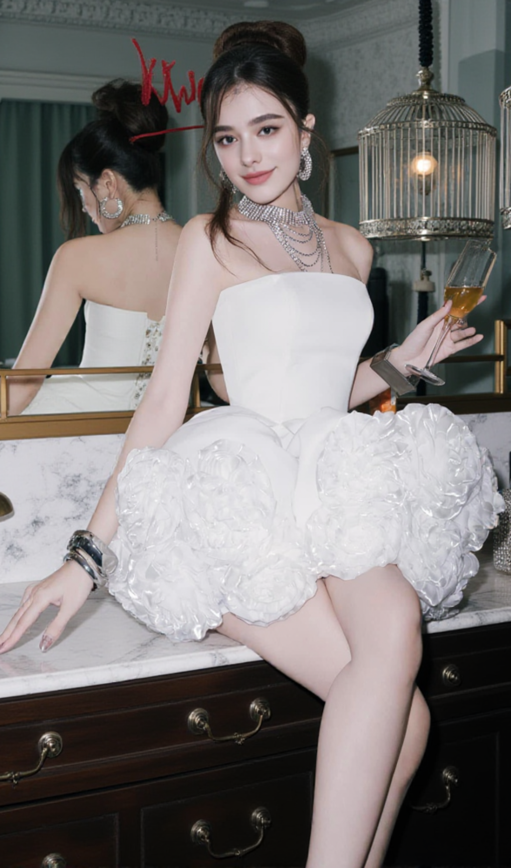 Indulge in luxury with the Sebast Flower Strapless Velvet Mini Dress in White. This sophisticated and exclusive dress features a stunning flower strapless design and is crafted from premium velvet for a touch of elegance. Perfect for any occasion, this dress will make you feel like a work of art.