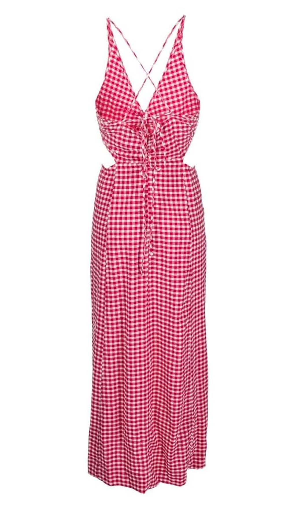SEERSUCKER PLUNGE MAXI DRESS IN PINK
