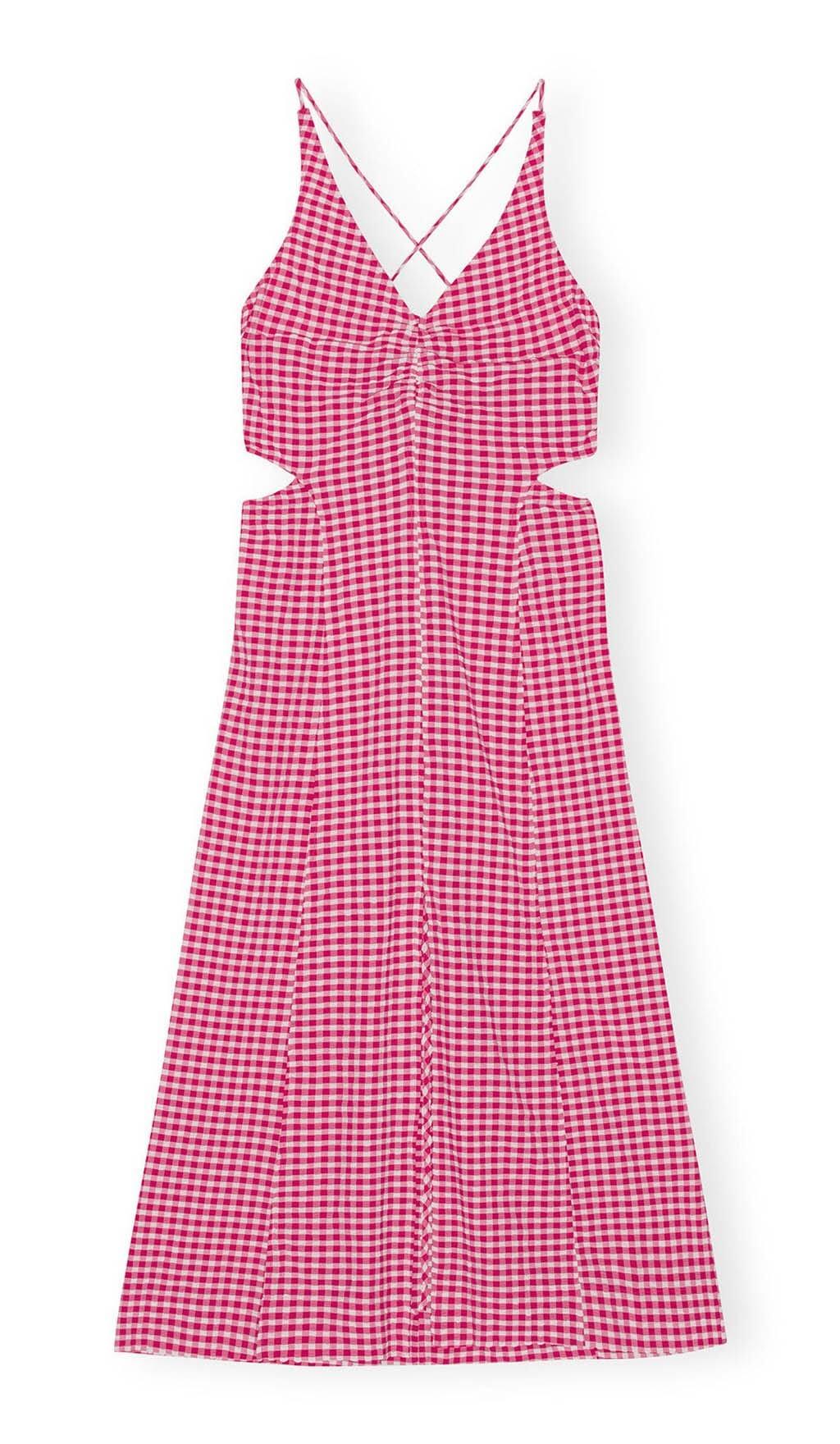 Made from airy seersucker fabric, this dress is designed to keep you cute and cool even on the hottest days. The figure-flattering silhouette accentuates your curves, while the pink color adds a feminine touch.