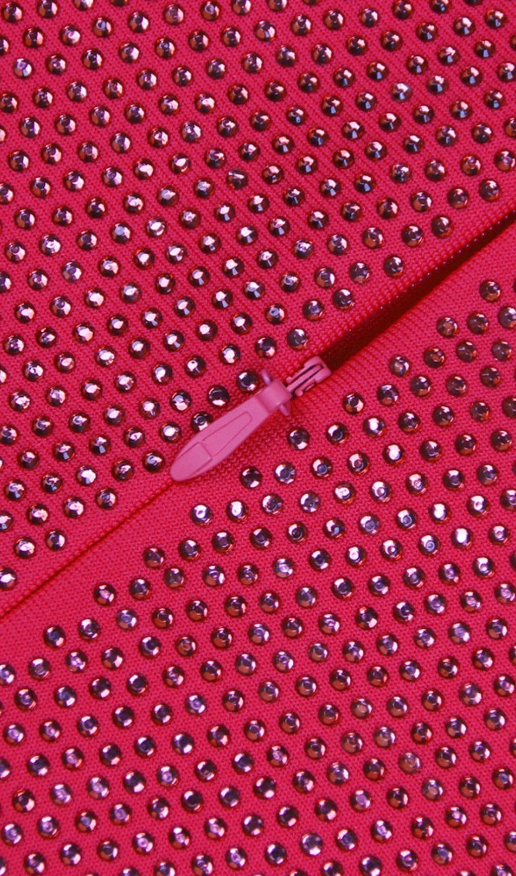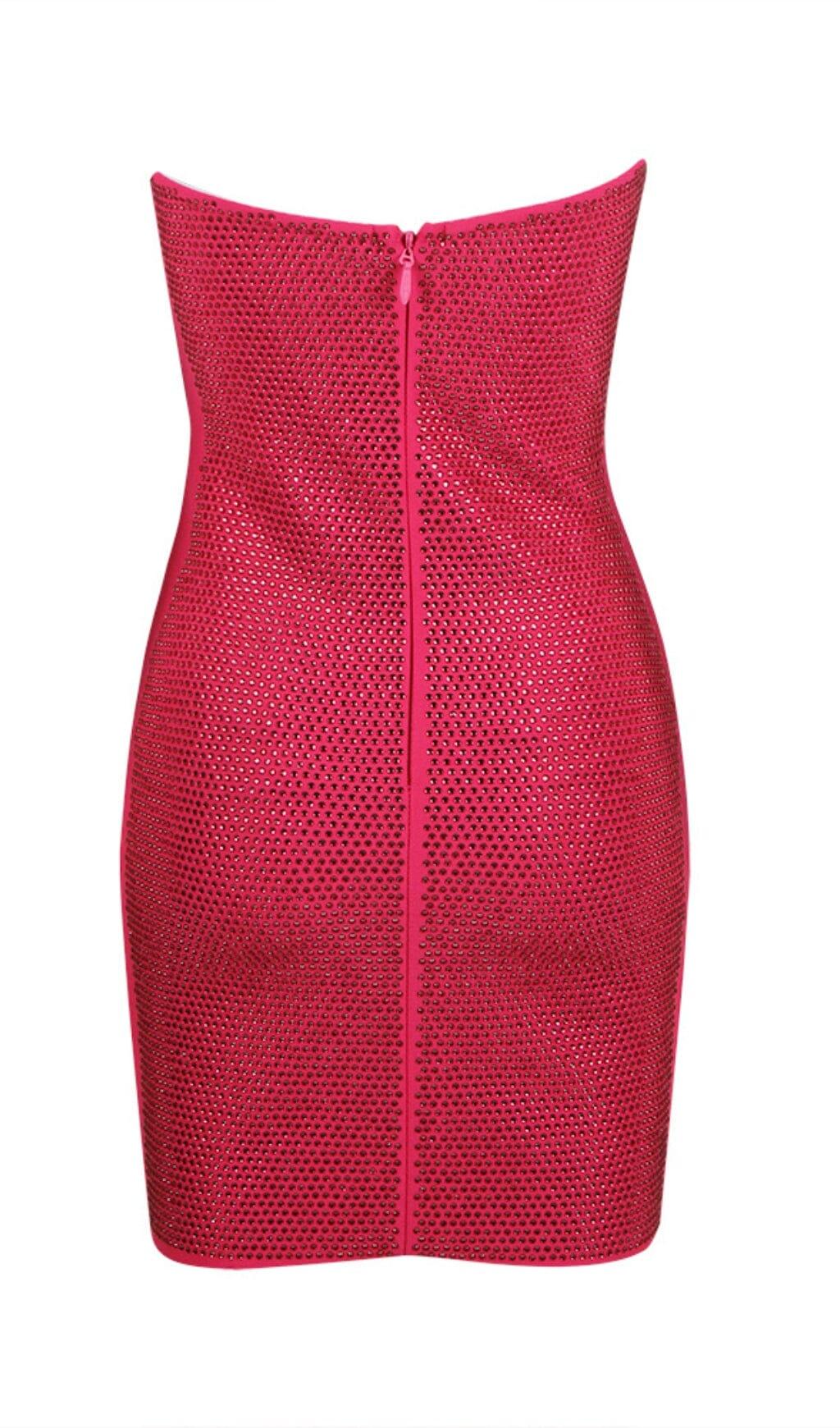 SEQUIN BANDEAU MINI DRESS IN DEEP CRIMSON