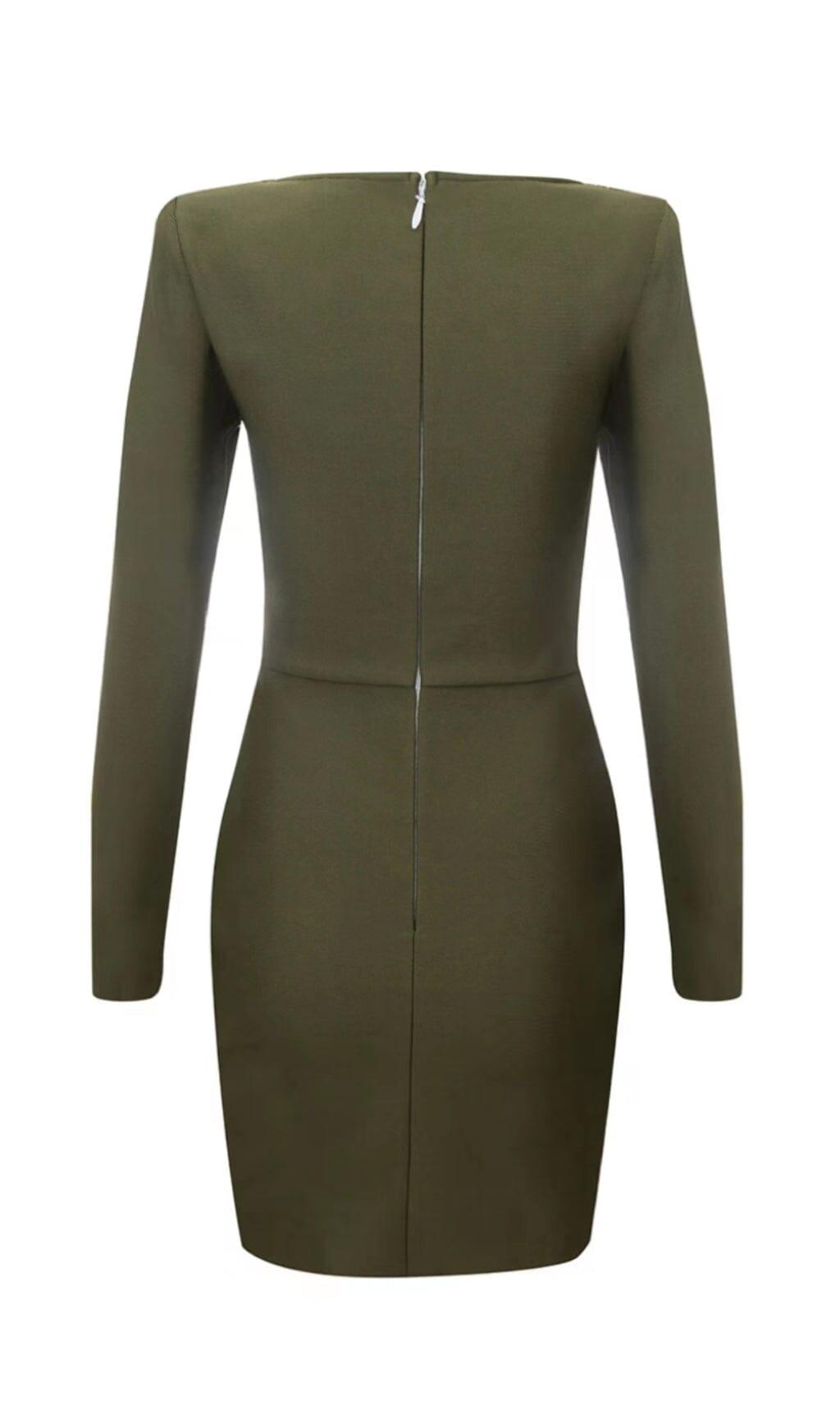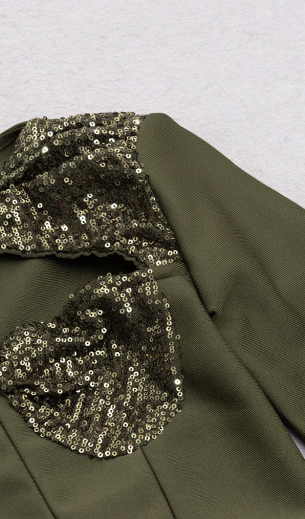 SEQUIN BODICE HIP WRAP DRESS IN OLIVE GREEN