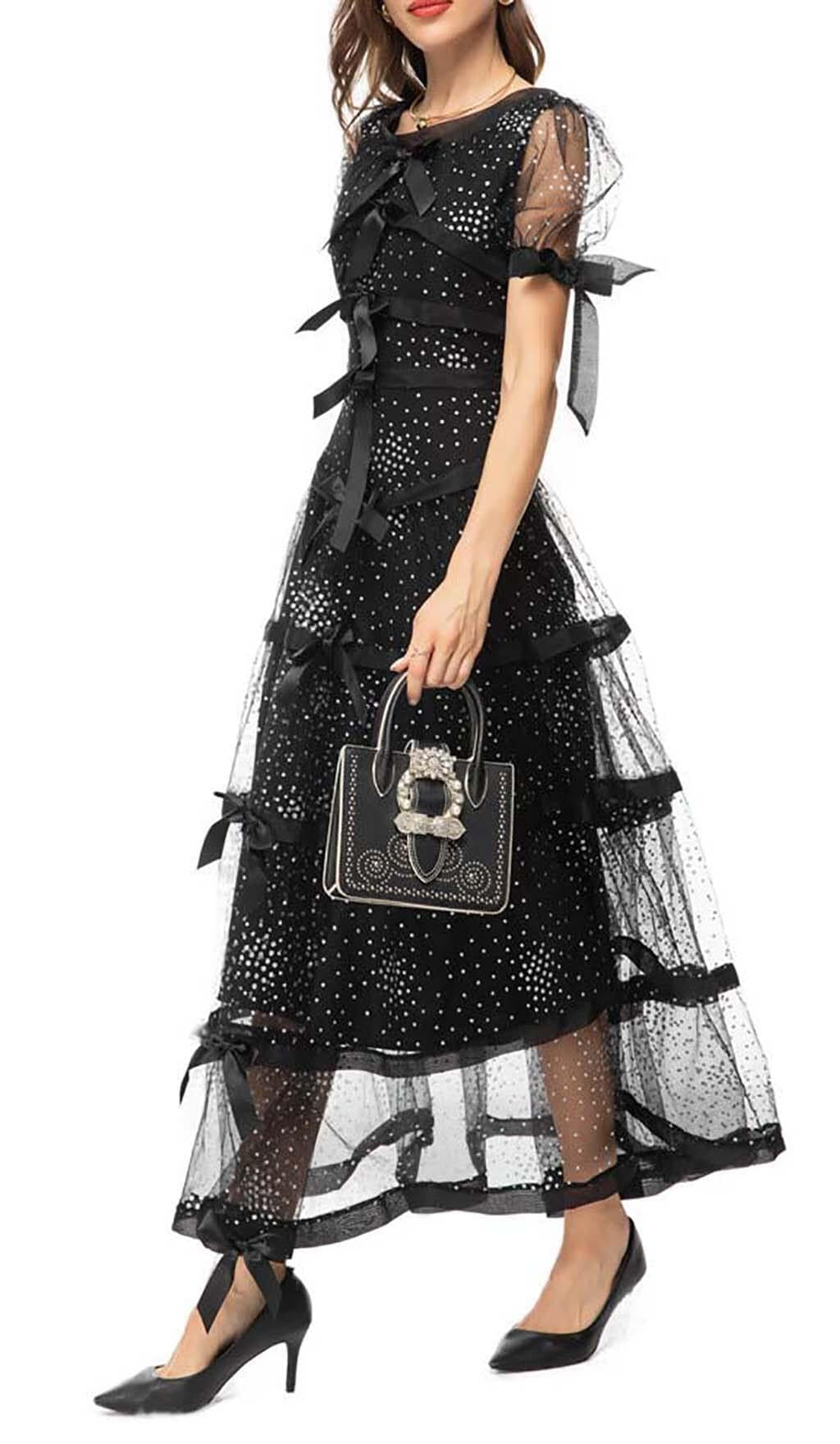 SEQUIN BOW DETAILED MAXI DRESS IN BLACK