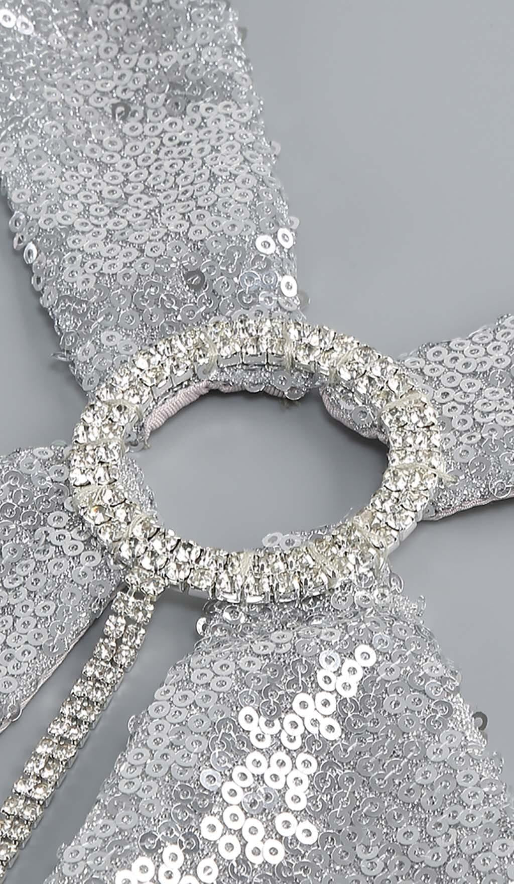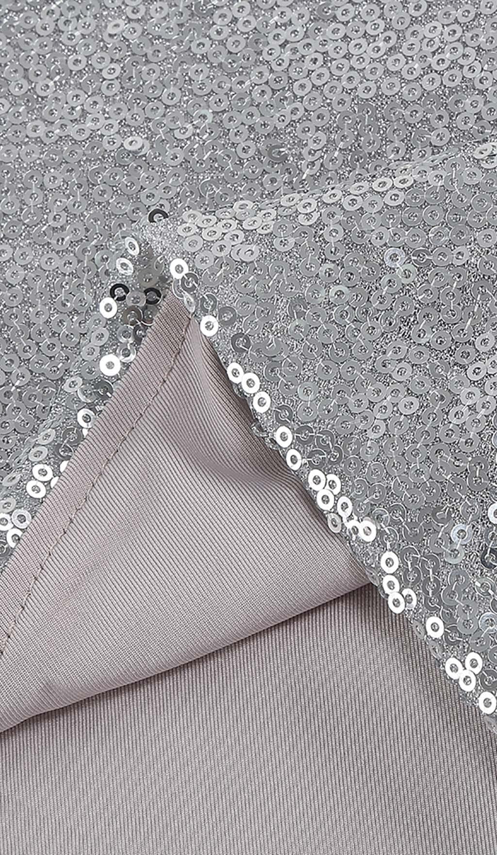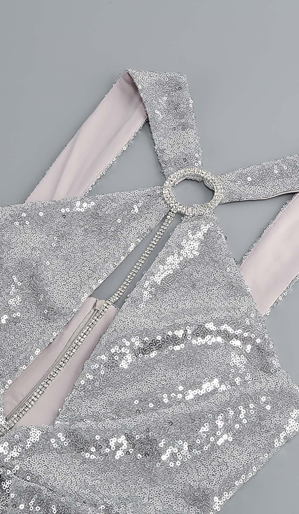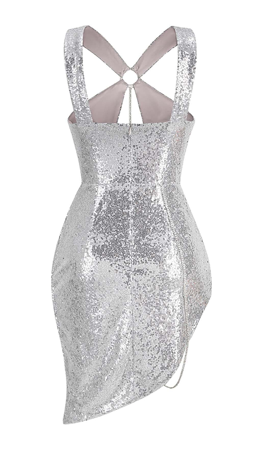 SEQUIN CUTOUT HIGH LOW DRESS IN SILVER