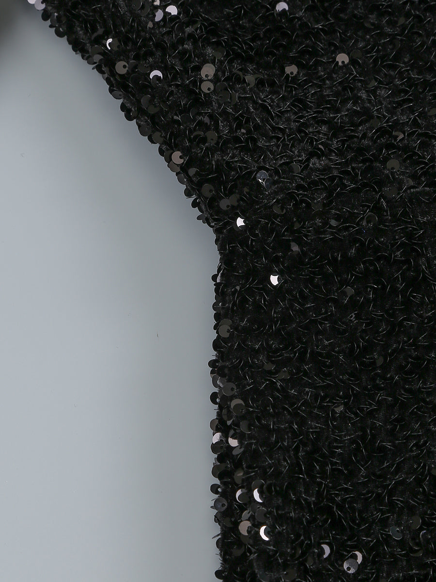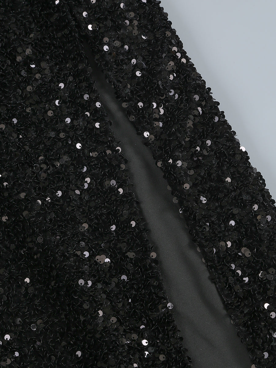 The intricate sequin embellishments add a touch of glamour, while the side slit allows for easy movement. Made with high-quality materials, this dress exudes elegance and sophistication. Perfect for the fashion-forward individual.