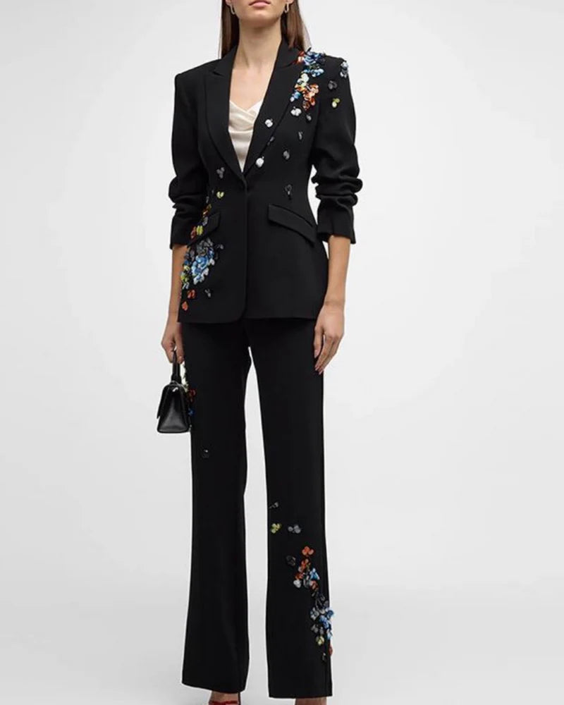 Sequin Flower Scrunched black Blazer set