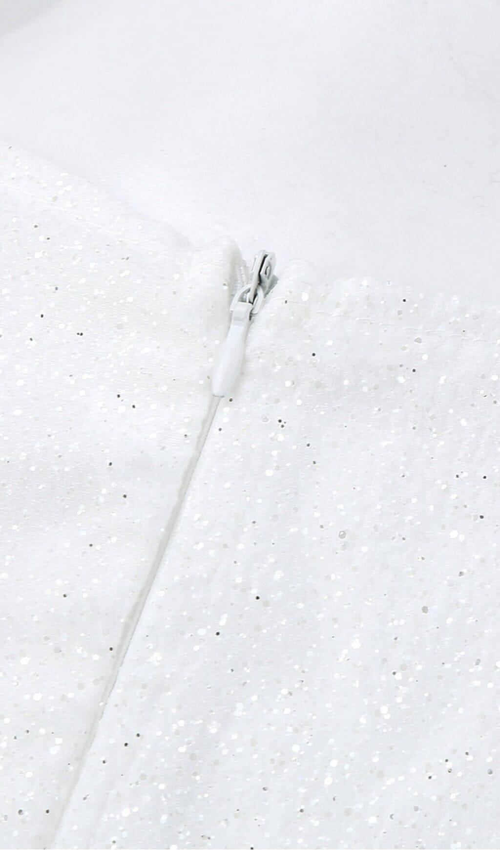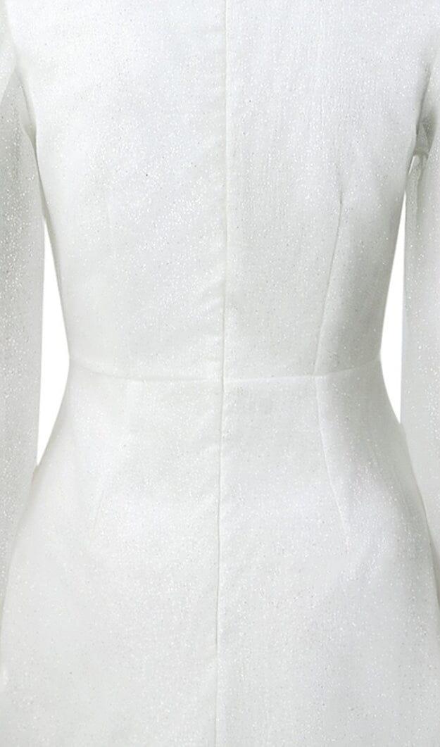 SEQUIN LANTERN SLEEVES DEEP V-NECK WRAP HIP SEXY MINI DRESS IN WHITE
