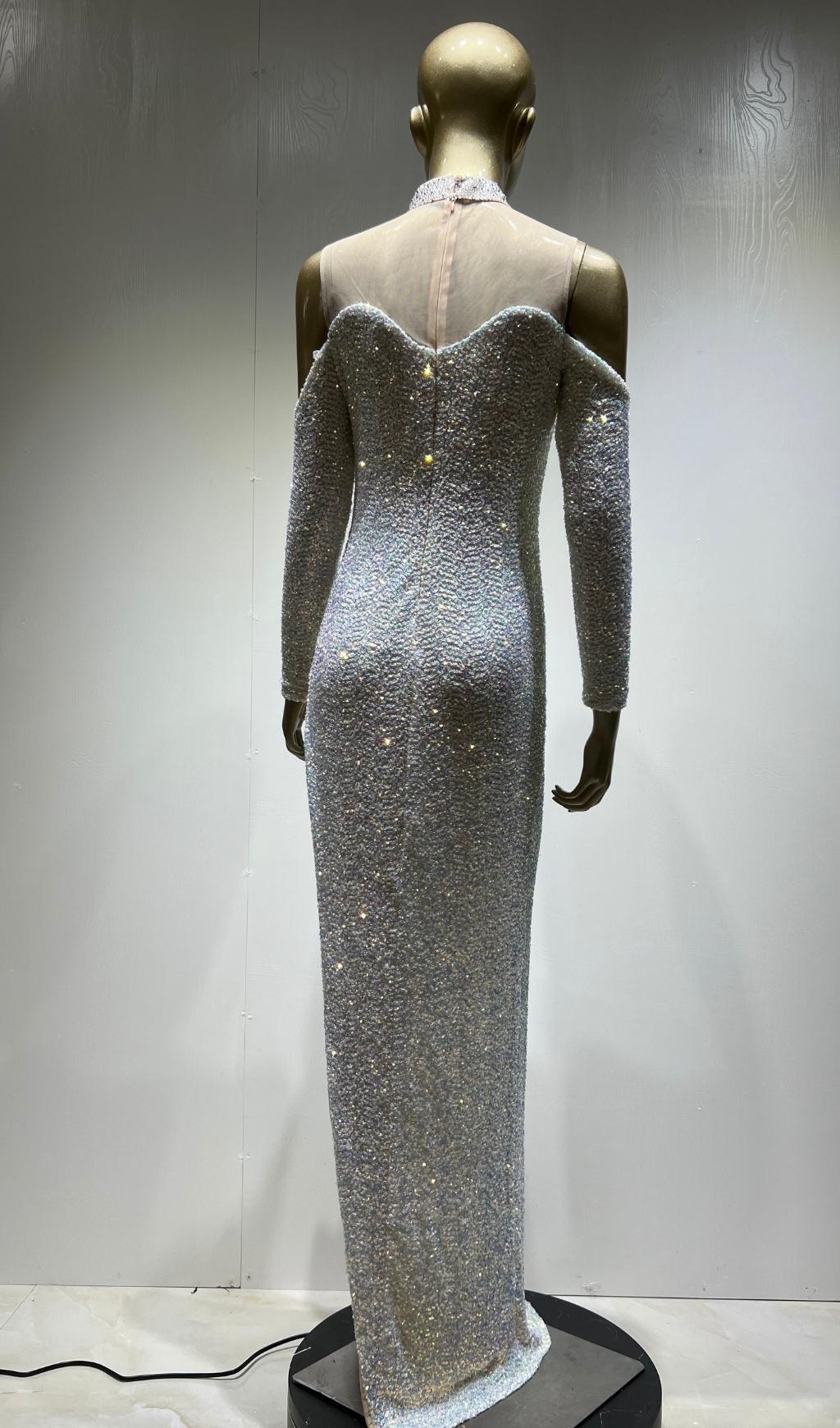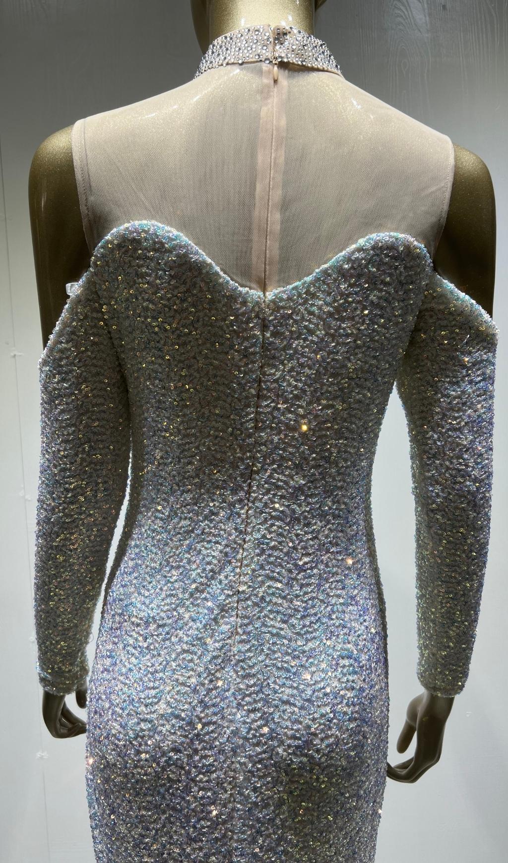 Stand out at any event with our glamorous Sequin Mini Dress in Silver. This dress is designed to make you shine and sparkle, ensuring that all eyes will be on you. The waisted design accentuates your figure, giving you a confident and elegant look.