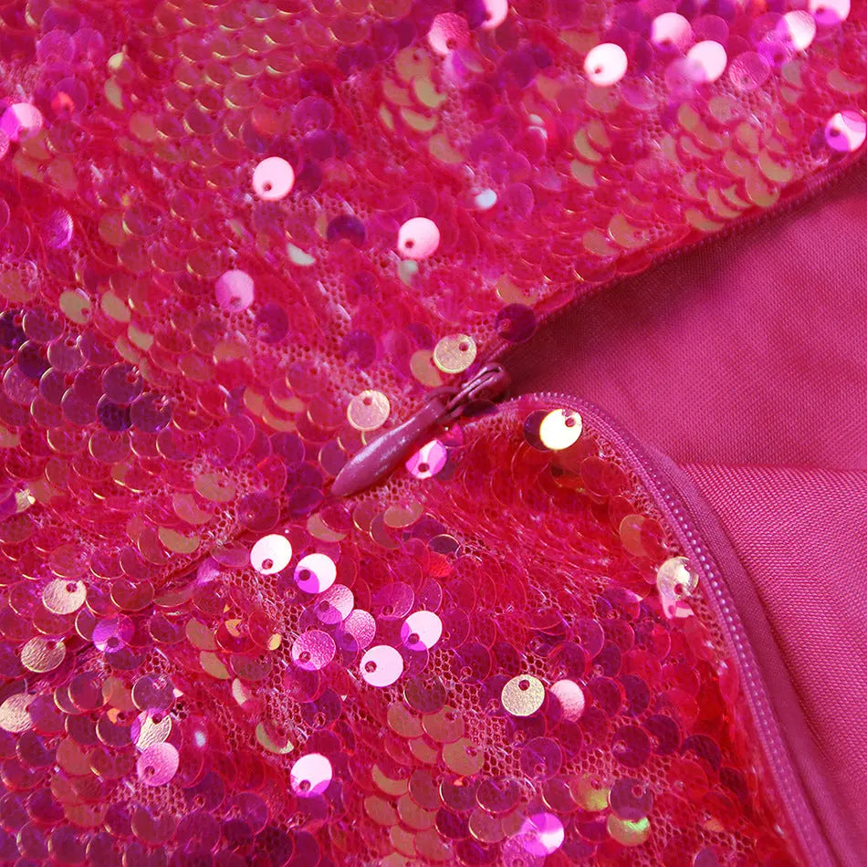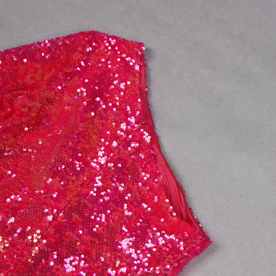 ROSE RED SEQUIN ONE SHOULDER MINI DRESS