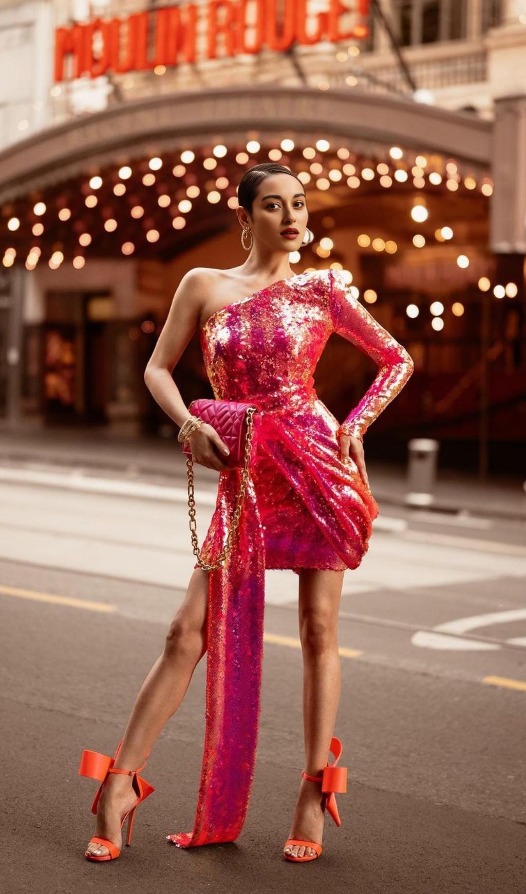SEQUIN ONE SHOULDR MINI DRESS IN PINK