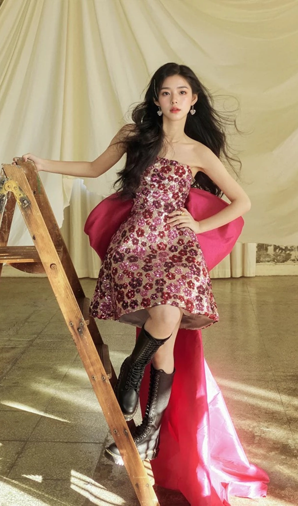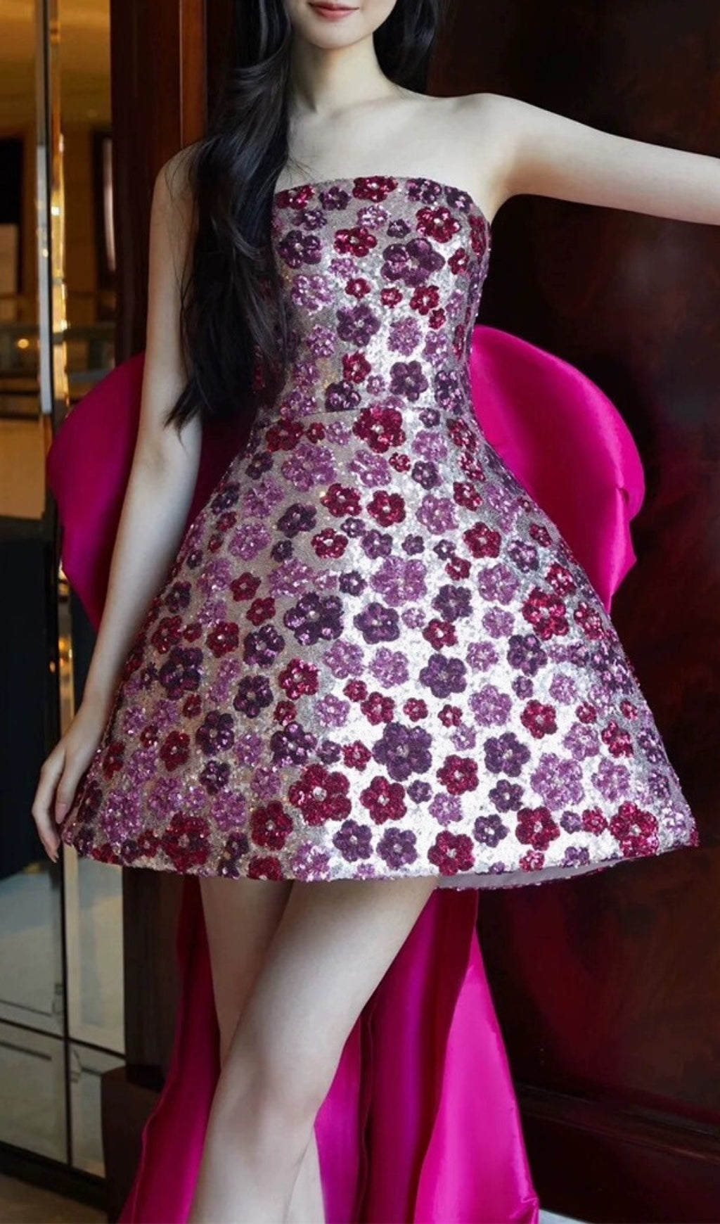 SEQUIN PINK FLOWER MINI DRESS