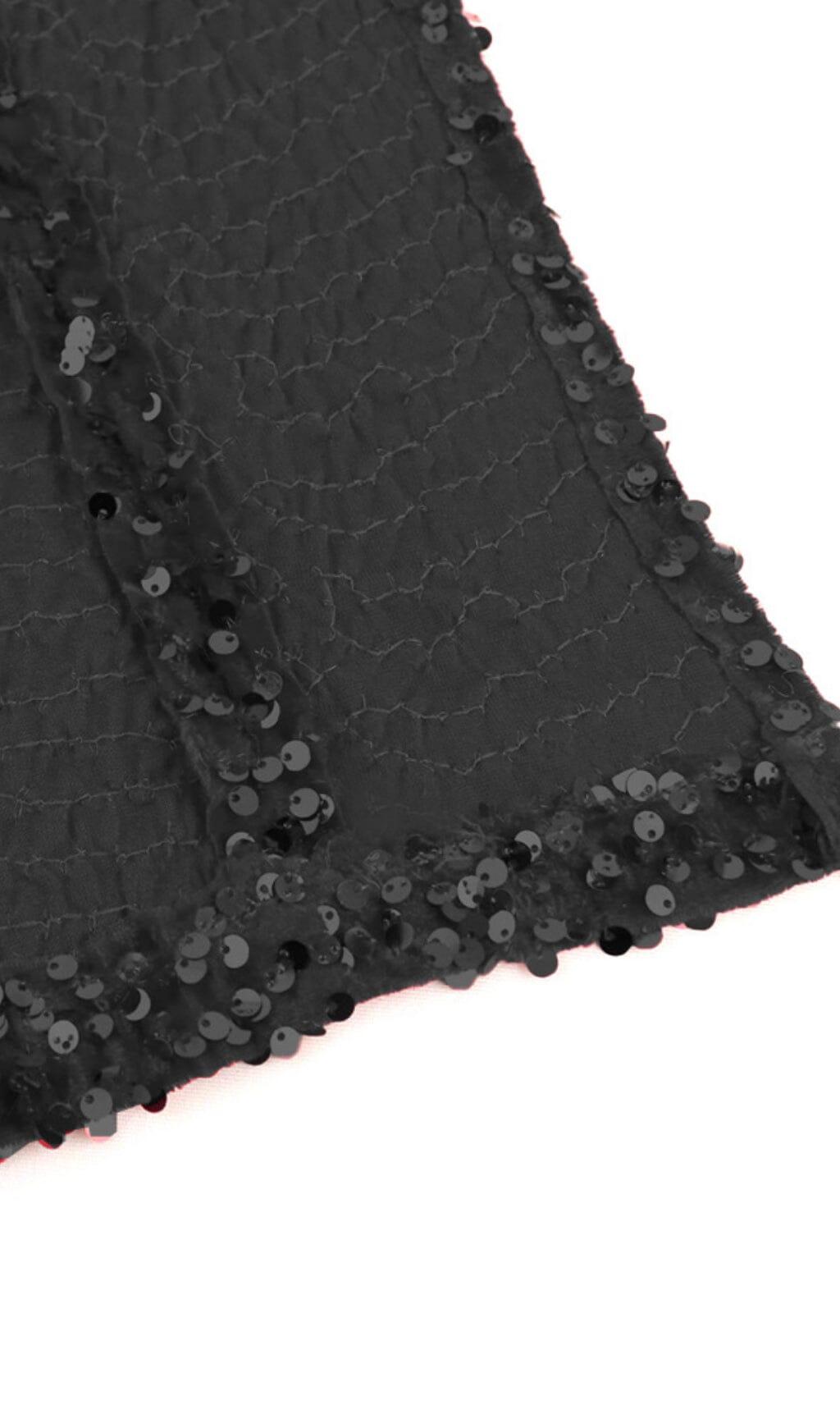 • The black sequin fabric adds a touch of mystery and dazzles in the light, making you the center of attention.