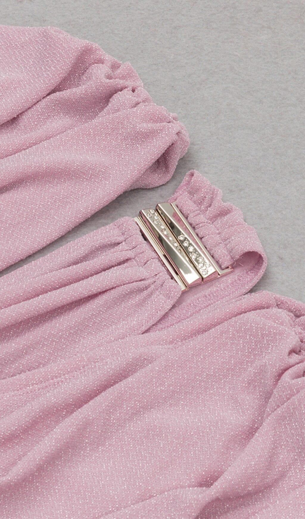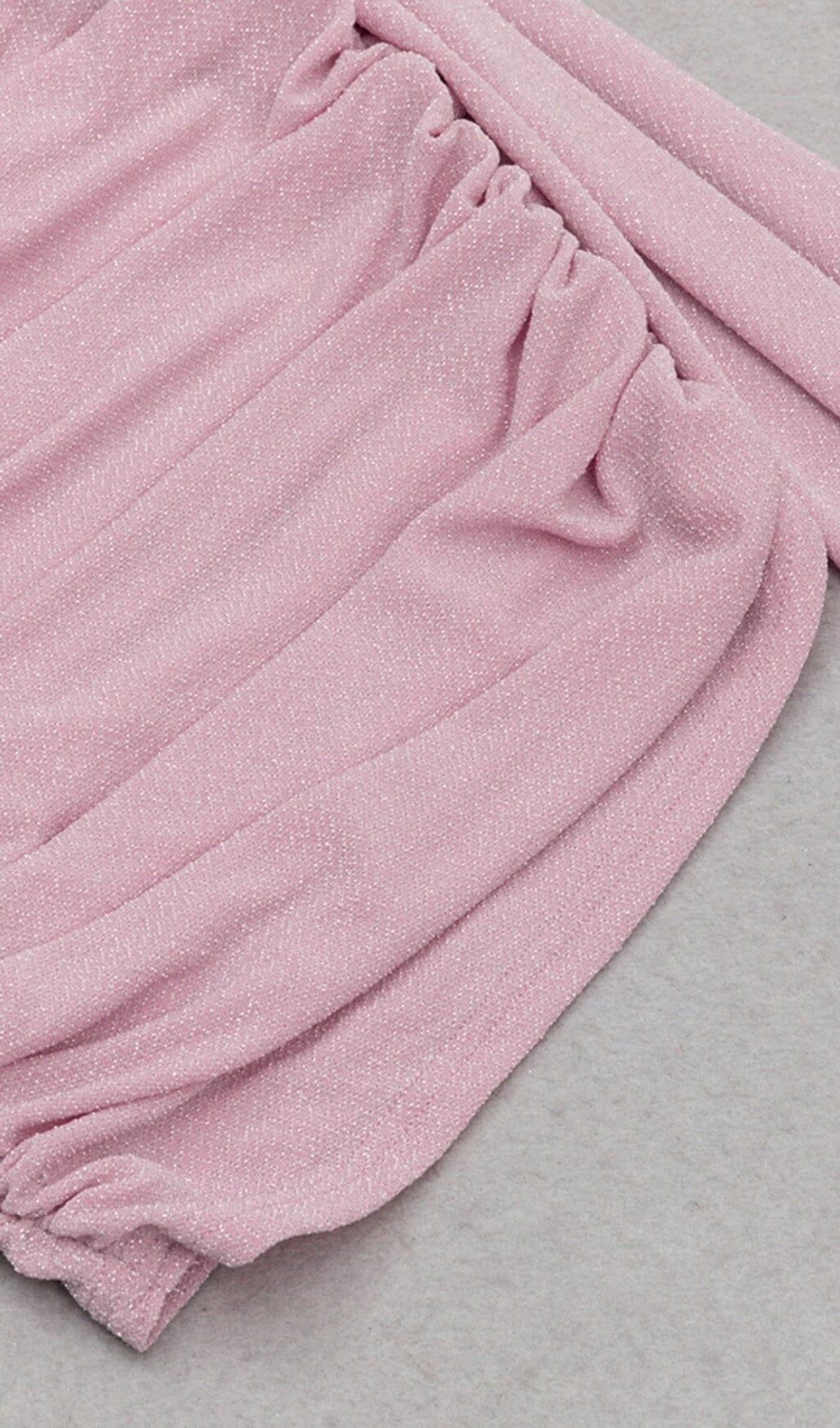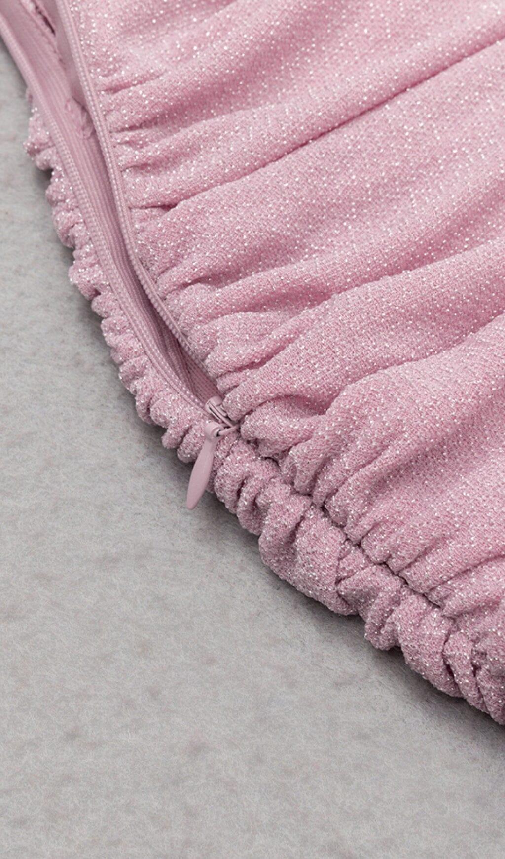 SEQUIN RUCHED MINI DRESS IN ROSE PINK