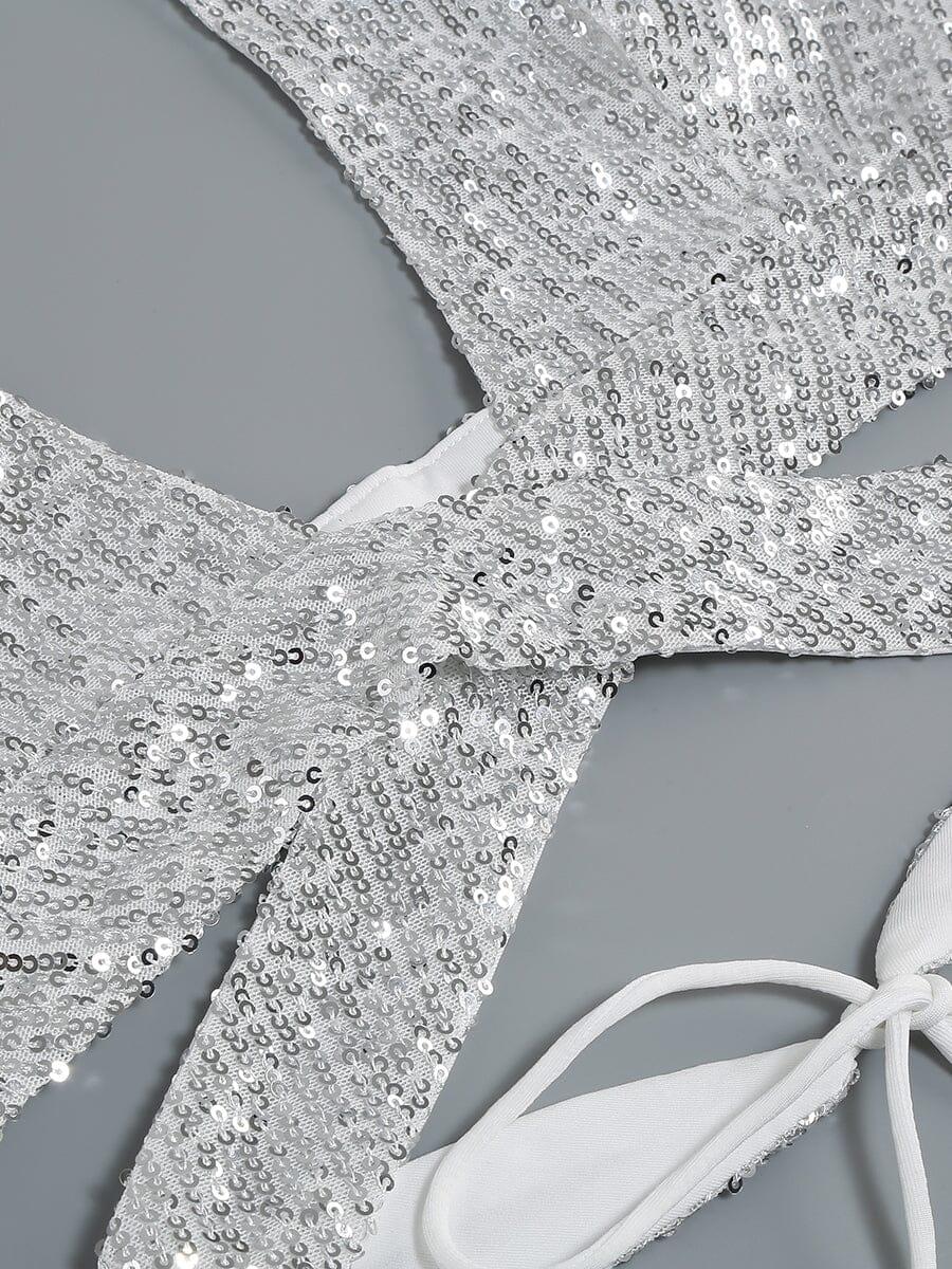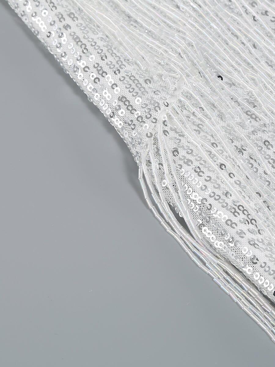 SEQUIN TASSEL BACKLESS MINI DRESS IN SILVER