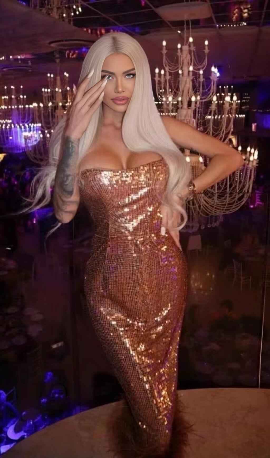 This dress is not just a piece of clothing, but a statement of style and confidence. Here's why you should choose the SEQUINED PLUSH SLIM FIT DRESS IN BROWN: