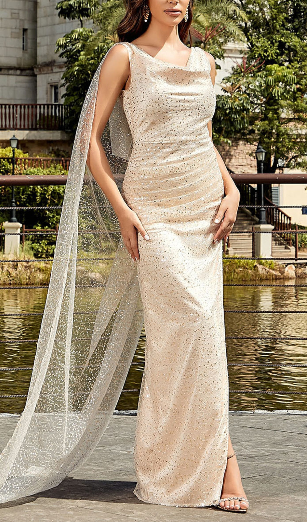 The stunning sequin details and elegant split design will turn heads and make you feel like a star. Perfect for special occasions or a night out on the town, this dress will make you feel confident and beautiful.