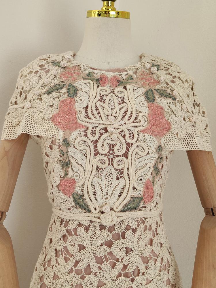Introducing our "Seraphic Floral Dream Dress" - a masterpiece woven with intricate layers of lace that tell a story of elegance and grace. This midi dress boasts a mesmerizing floral pattern, adding a touch of enchantment to every stitch. The weight of its intricate detail mirrors the strength of a nurturing mother, making it the perfect attire for those who exude care and compassion. Step into a world of serenity and style, where the beauty of flora meets the essence of a loving heart.