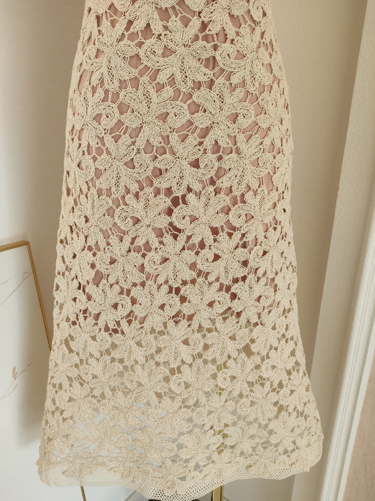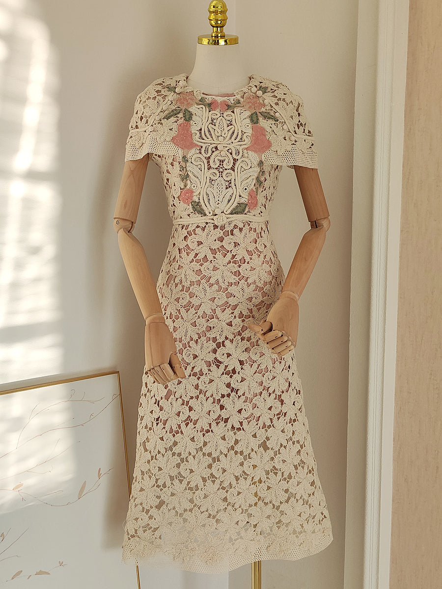 Introducing our "Seraphic Floral Dream Dress" - a masterpiece woven with intricate layers of lace that tell a story of elegance and grace. This midi dress boasts a mesmerizing floral pattern, adding a touch of enchantment to every stitch. The weight of its intricate detail mirrors the strength of a nurturing mother, making it the perfect attire for those who exude care and compassion. Step into a world of serenity and style, where the beauty of flora meets the essence of a loving heart.