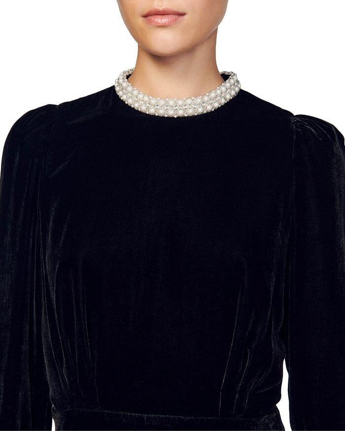 • Long sleeves, ruched armholes, satin-effect cuffs embellished with buttons